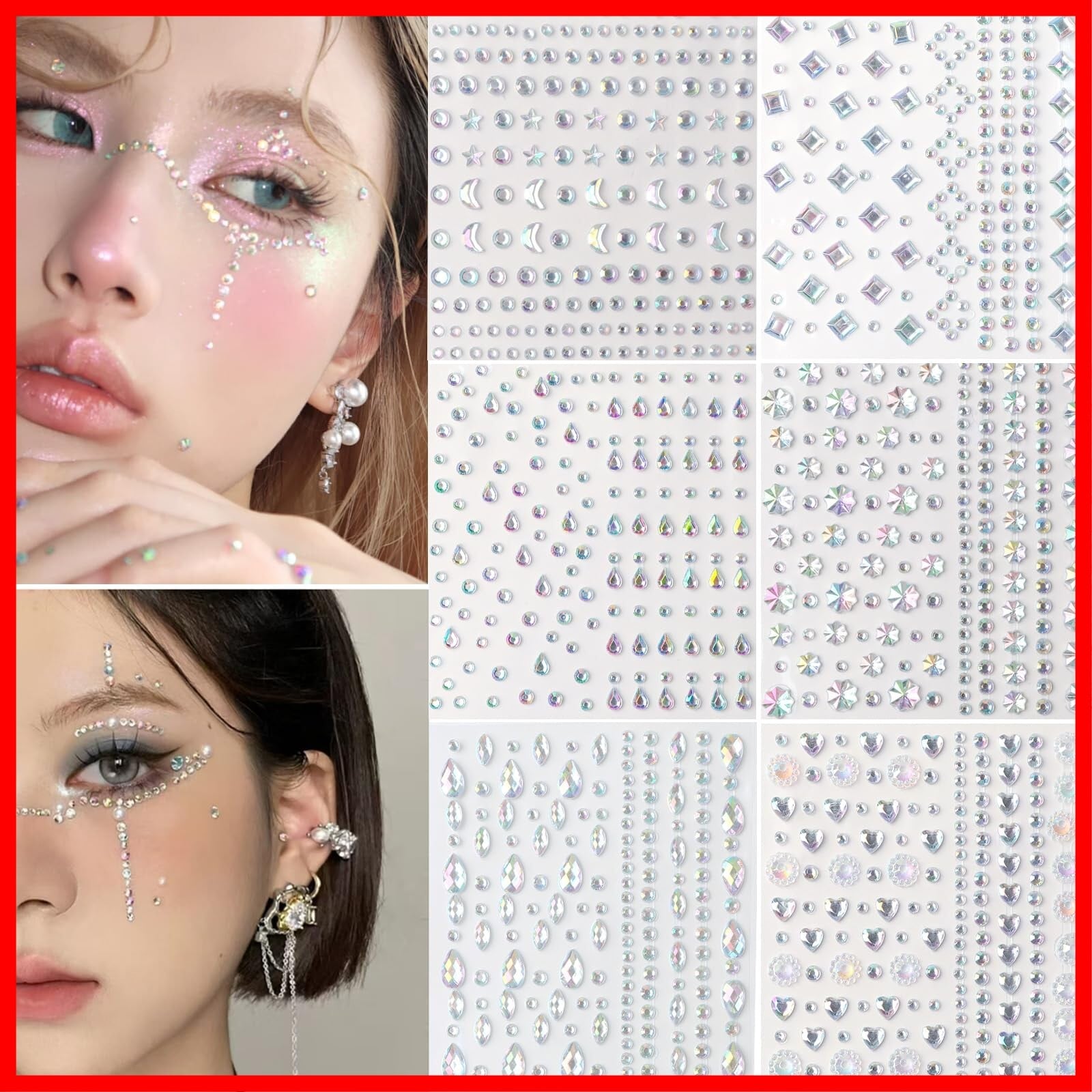 高品質:フェイスグリッターステッカーは、高品質の樹脂で作られたクリスタルで、透明で輝いています。白く、純粋で透明で、さまざまなサイズが用意されており、小さいものから大きいものまで自由に貼り付けることができます。無害で無毒なので、肌に優しいです。フェイスシールは、顔、体、ネイルに安全に使用できます。想像力豊かなDIY形状を作り出しましょう