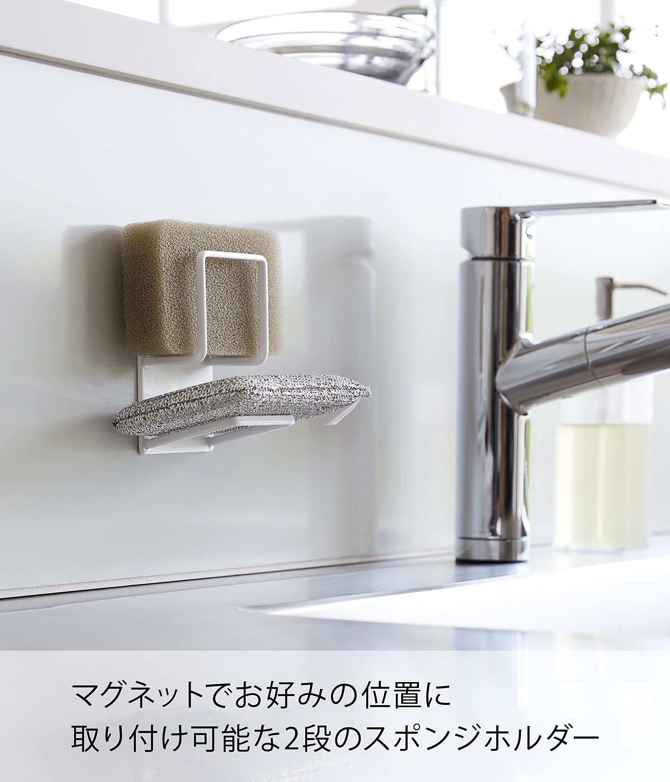山崎実業(Yamazaki) マグネット スポンジホルダー ダブル ホワイト 約W6.5×D6.3×H11cm タワー tower スポンジ置き 2段タイプ お手入れ簡単 3280 | hananoki