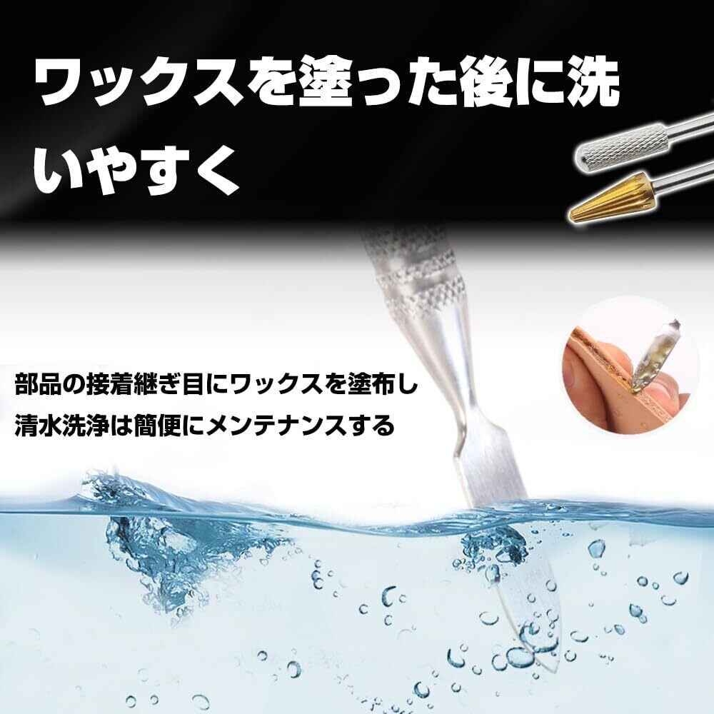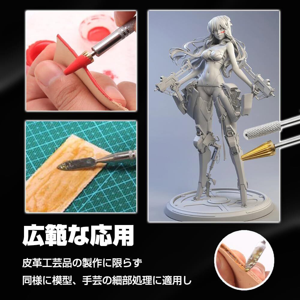 【広範な応用】適用領域は広範で、皮革工芸品の製作に限らず、同様に模型、手芸の細部処理に適用し、部品の接着継ぎ目にワックスを塗布し、完成後、清水洗浄は簡便にメンテナンスする。革工芸家の理想的なパートナーです。