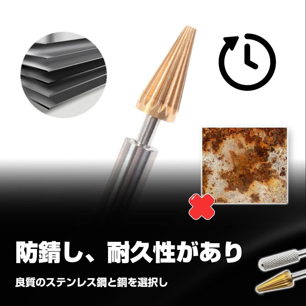 【規格詳細】全長12.7 mm、直径mm、良質のステンレス鋼と銅を選択し、防錆し、耐久性があり、研磨しやすい。正確な制御量は、皮革、モデル、手芸などに適しており、細部の処理は、ワックスを塗った後に洗いやすく、専門的な体験を提供します。