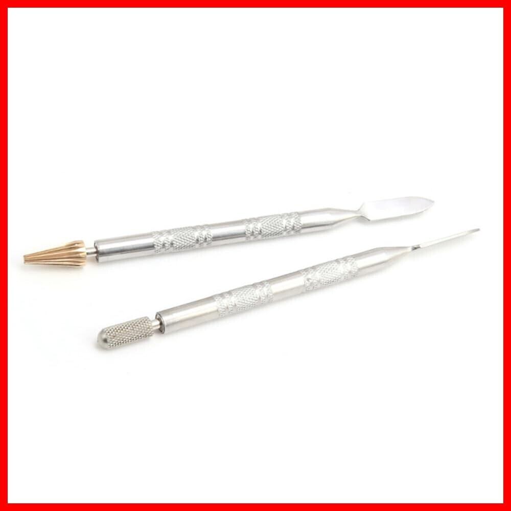 コバ塗り レザークラフト ペン型コバ塗り器 ヘラ ローラー 両用 タイプ 道具 工具 ワックス 革 仕上げ 筆 回転 DIY 2本セット 銀ペン ステンレス製 ニス塗り 5.59インチ 142mm
