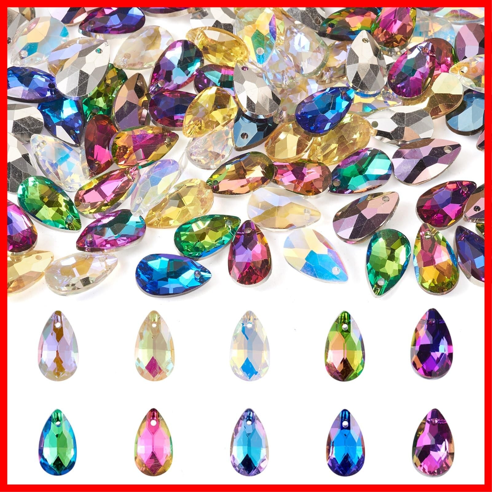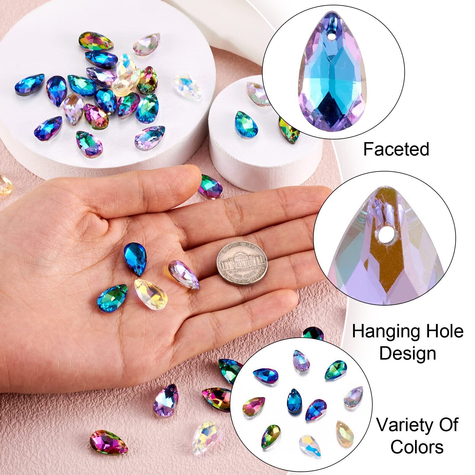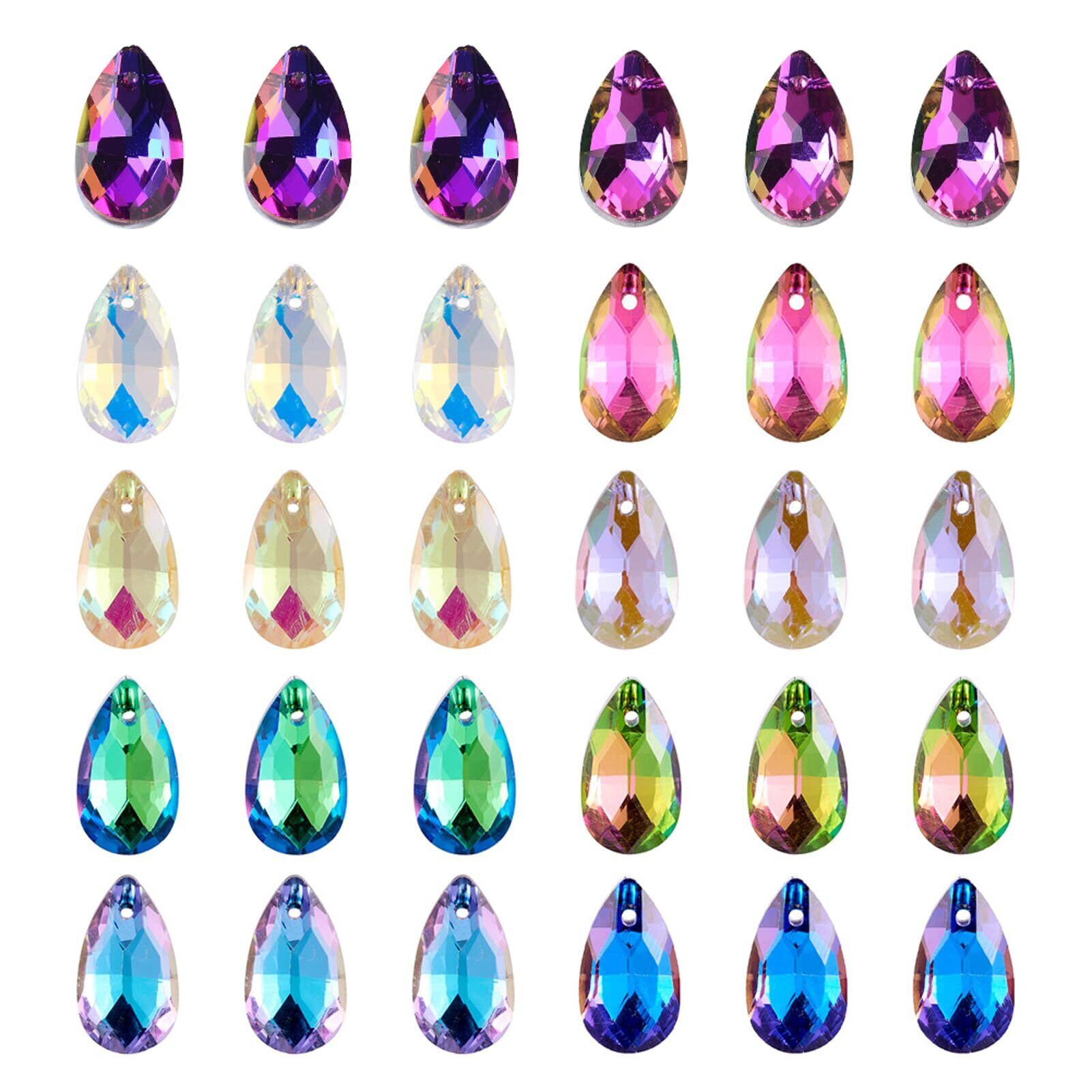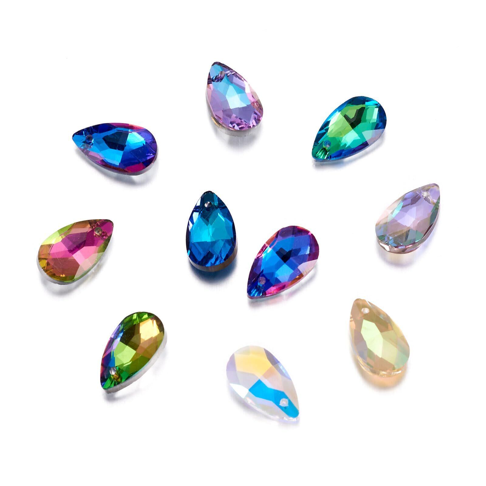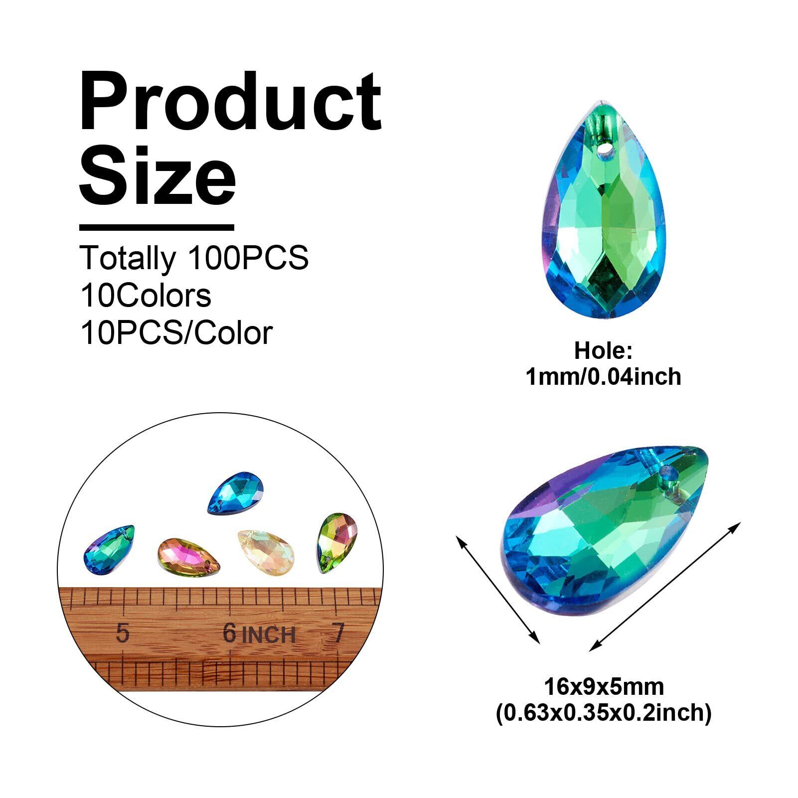 Beadthoven 約100個/箱 10色 しずく型 雫形 ガラスペンダント 多面カット サンキャッチャー キラキラ ガラスストーン チャーム ビーズ アクセサリーパーツ ジュエリー用 DIY ハンドメイド 手芸材料 手作り素材 クラフト用品 16x9x5mm | hananoki