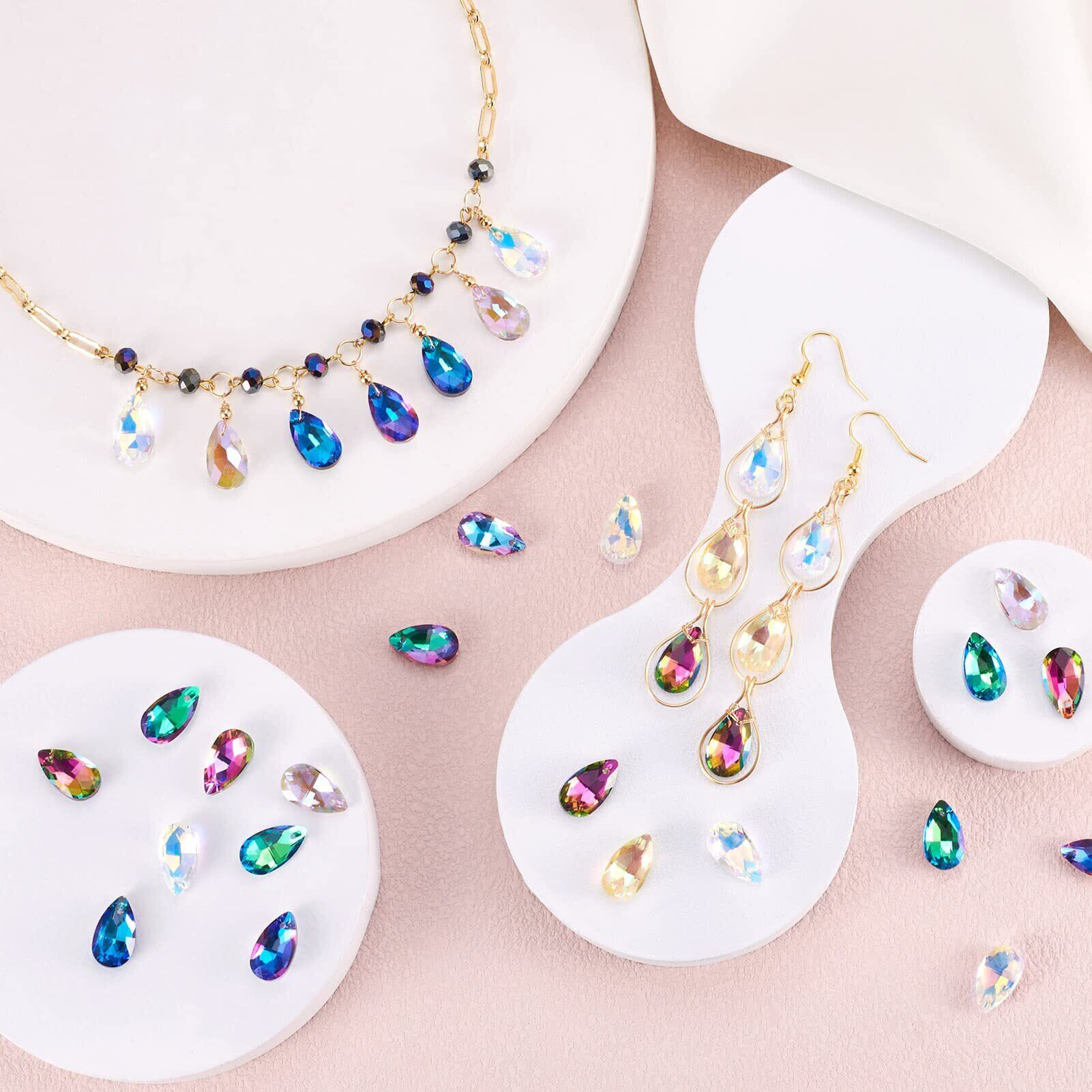 Beadthoven 約100個/箱 10色 しずく型 雫形 ガラスペンダント 多面カット サンキャッチャー キラキラ ガラスストーン チャーム ビーズ アクセサリーパーツ ジュエリー用 DIY ハンドメイド 手芸材料 手作り素材 クラフト用品 16x9x5mm