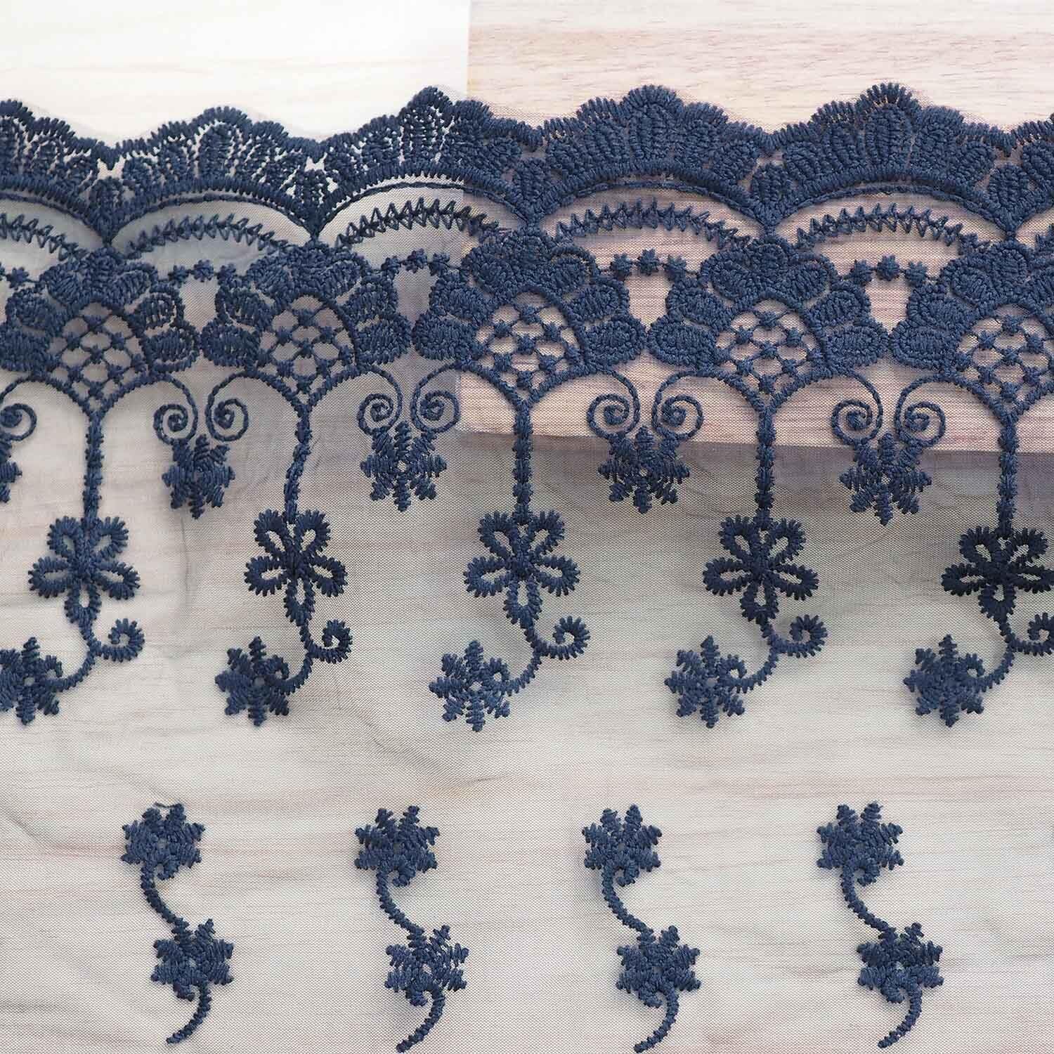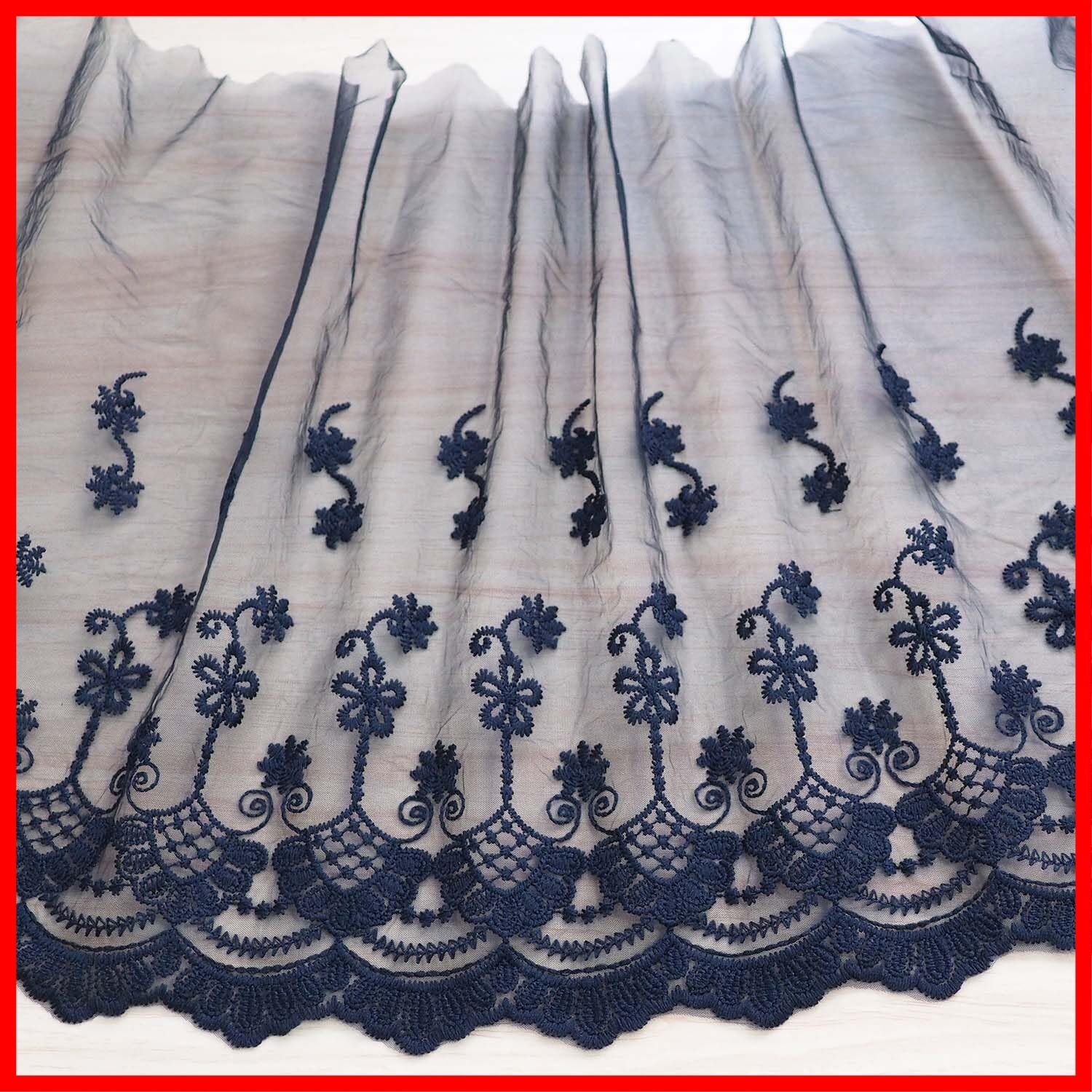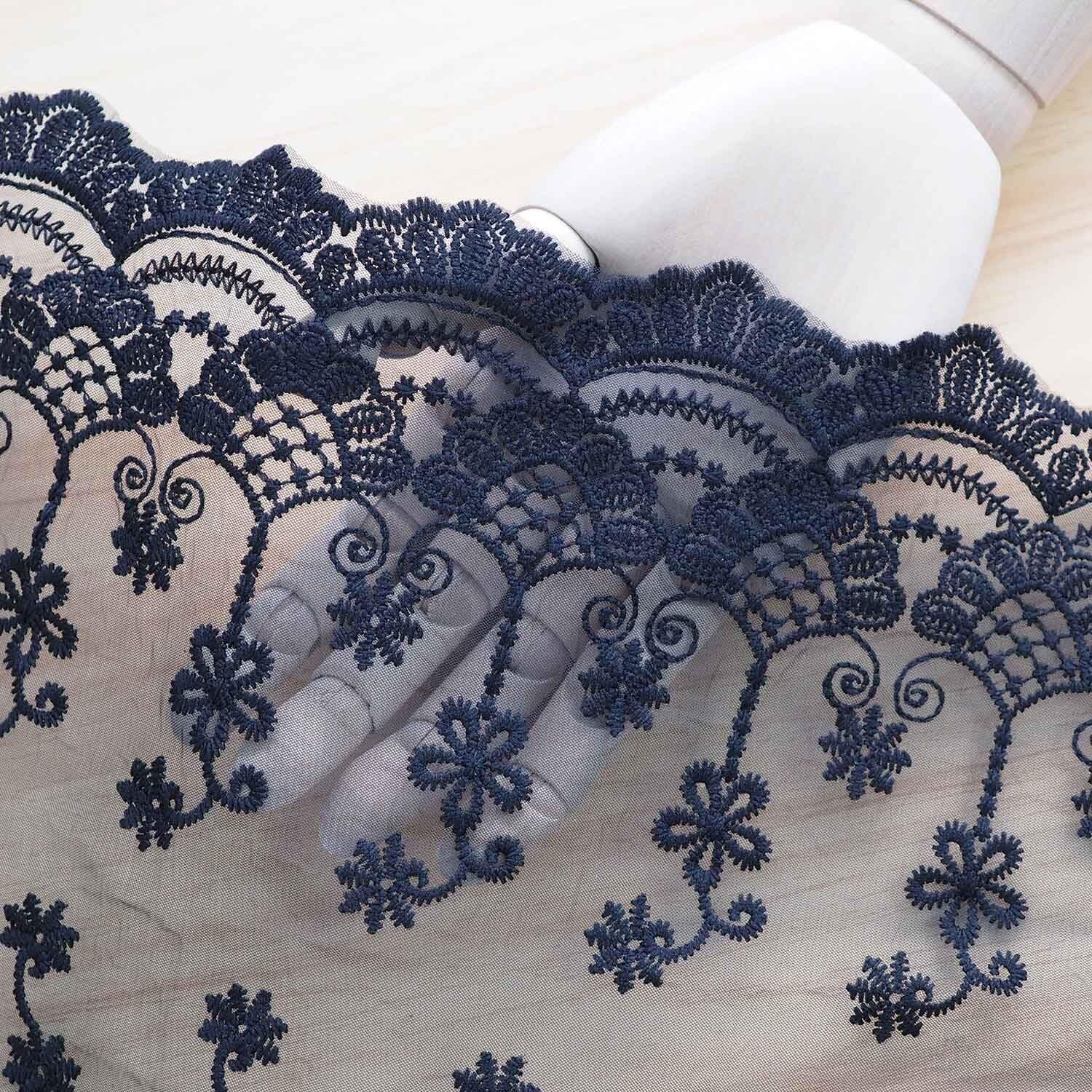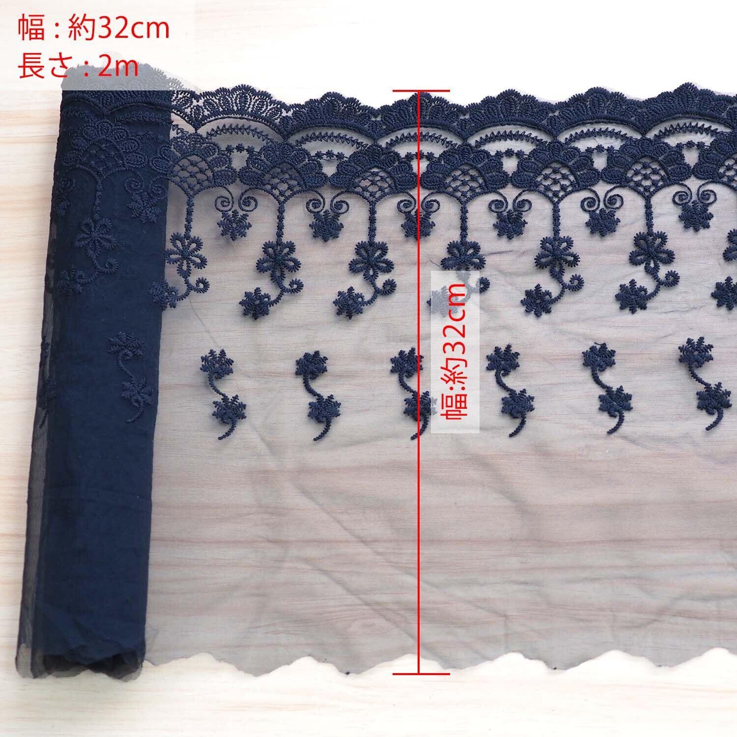 Hymyily 幅35cm x長さ200cm 花刺繍 花柄レース チュール 生地 手芸用品、アクセサリー テーブル掛け、カーテン、ウェディングドレス、DIY、服装装飾に最適 (ブラック)