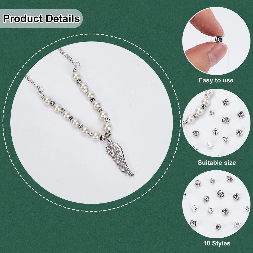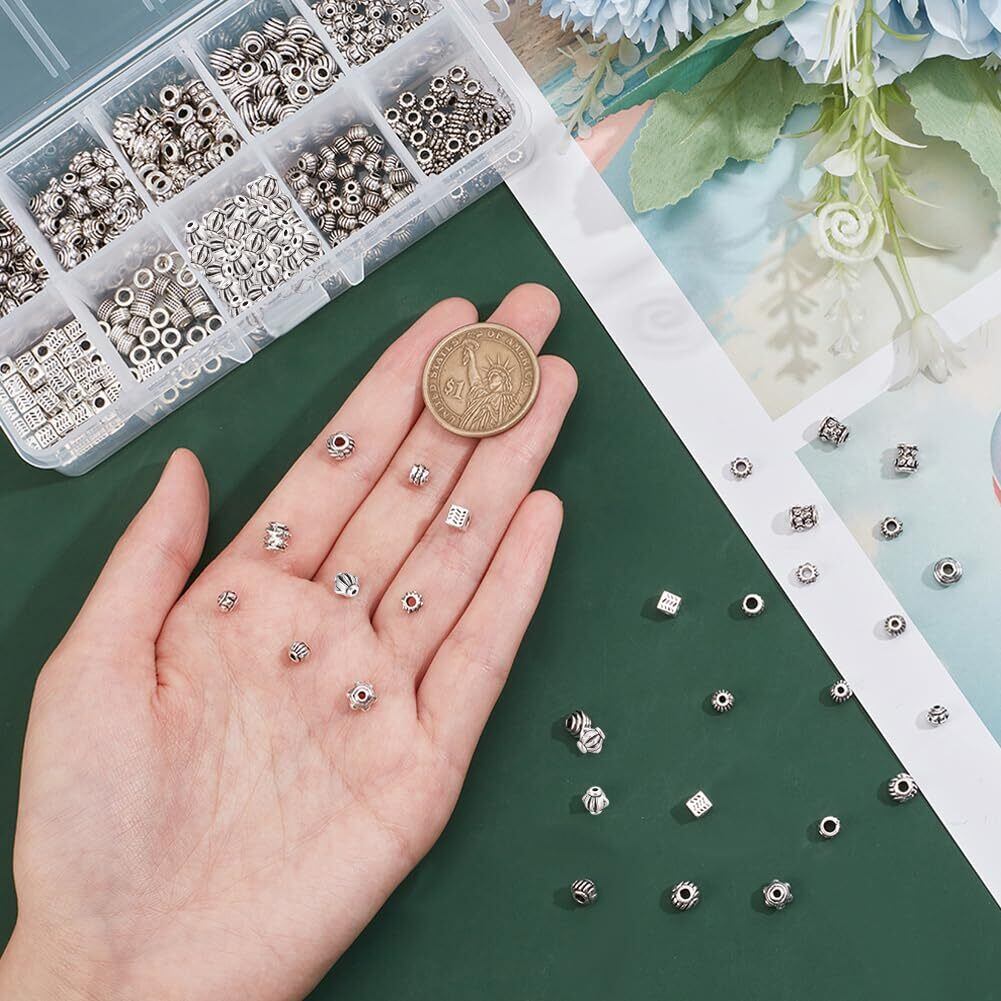 PH PandaHall 約500個 10種 合金 スペーサービーズ 菊座 花座 座金 メタルビーズ チャーム チベット風 ジュエリー製作 アクセサリーパーツ DIY用 クラフト 手作り素材 アンティークシルバー | hananoki