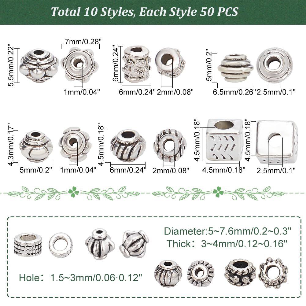 PH PandaHall 約500個 10種 合金 スペーサービーズ 菊座 花座 座金 メタルビーズ チャーム チベット風 ジュエリー製作 アクセサリーパーツ DIY用 クラフト 手作り素材 アンティークシルバー