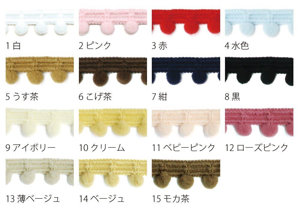 カラフルな作品に映えるかわいいボンボンブレードです。カルトナージュの縁取りやポーチやバッグなどのパイピングにおすすめです