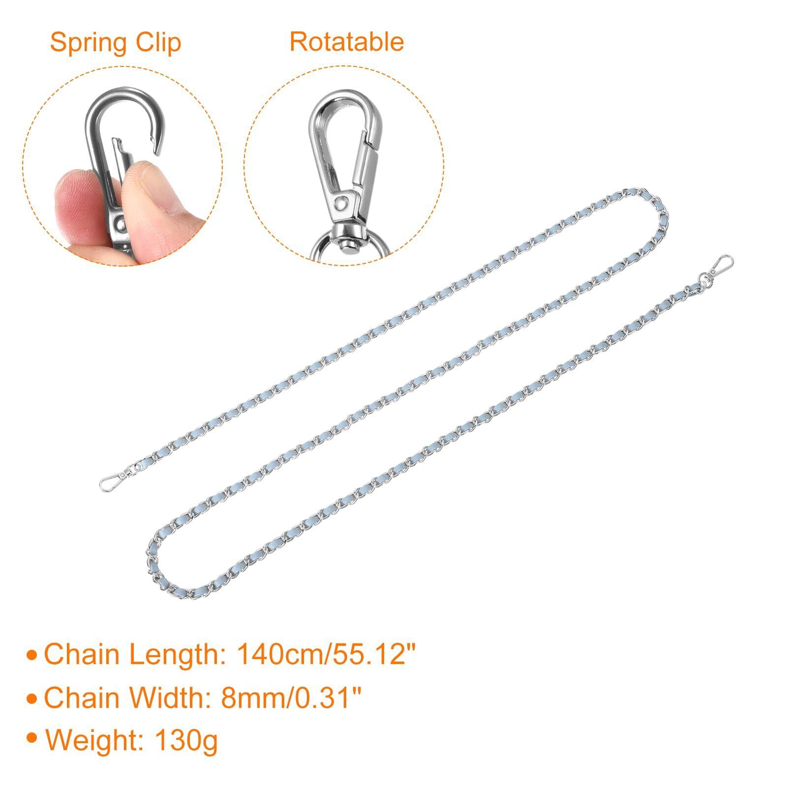 uxcell 財布チェーンストラップ 55"レザー製アイアンフラットチェーンストラップ ハンドバッグチェーン 肩掛けバッグとクロスボディバッグ用交換ストラップ(スカイブルーストラップ+シルバーチェーン)