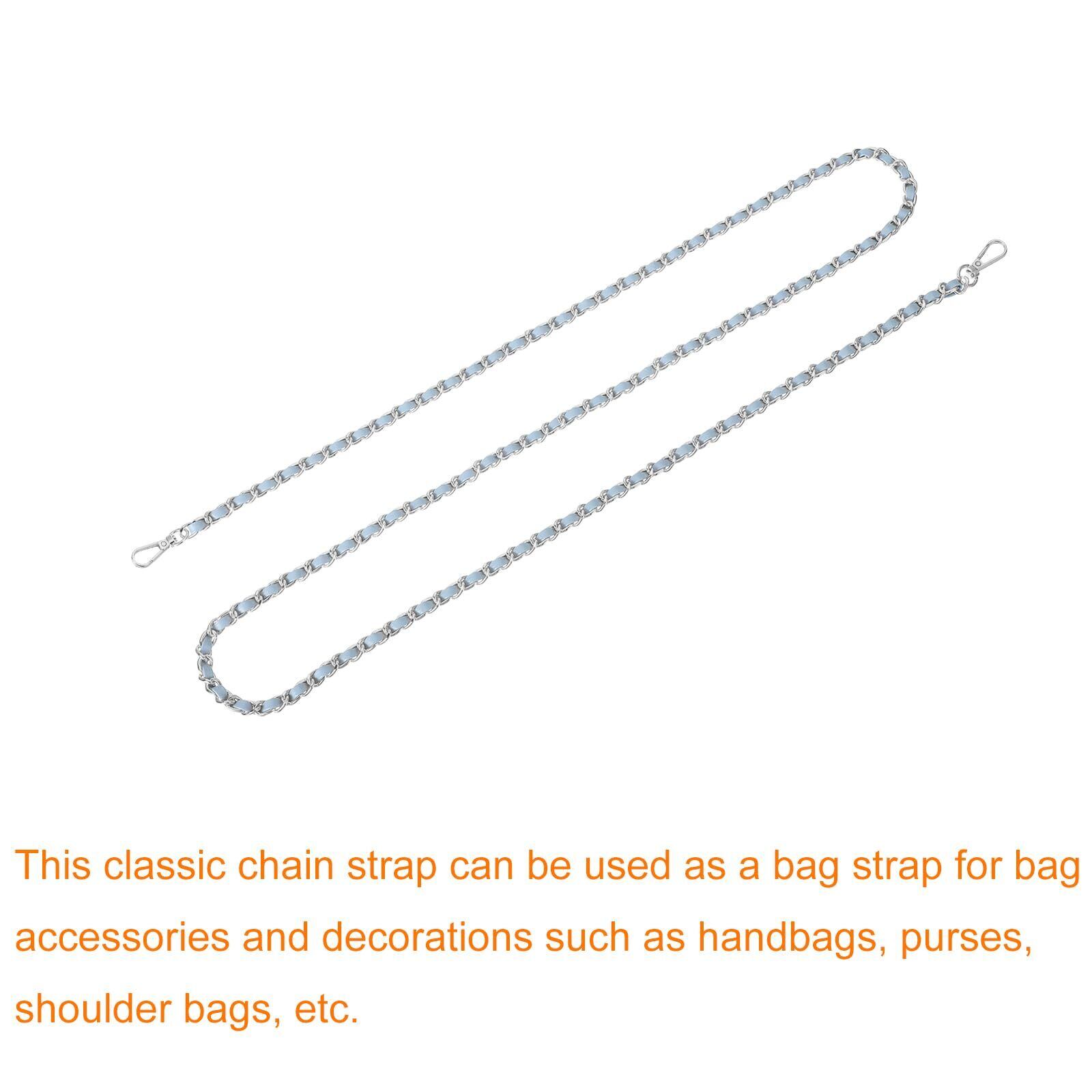 uxcell 財布チェーンストラップ 55"レザー製アイアンフラットチェーンストラップ ハンドバッグチェーン 肩掛けバッグとクロスボディバッグ用交換ストラップ(スカイブルーストラップ+シルバーチェーン) | hananoki