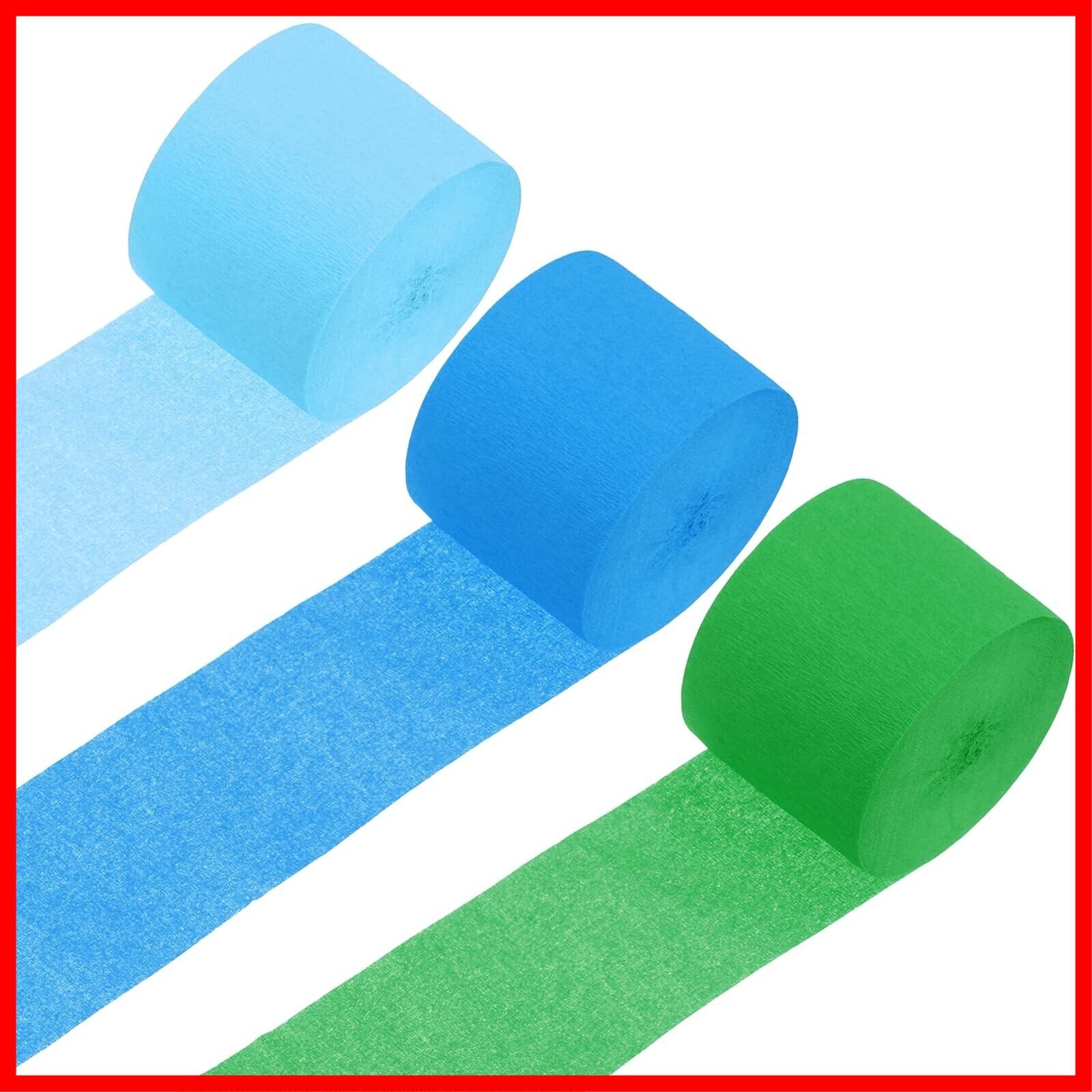 素材:クレープペーパー カラー:グリ ーン、スカイブルー、ライトブルー 寸法:4.5 cm x 25 m/1.8インチ x 82フィート パッケージ内容:3ロール x クレープペーパーストリーマー、各色1枚ずつ