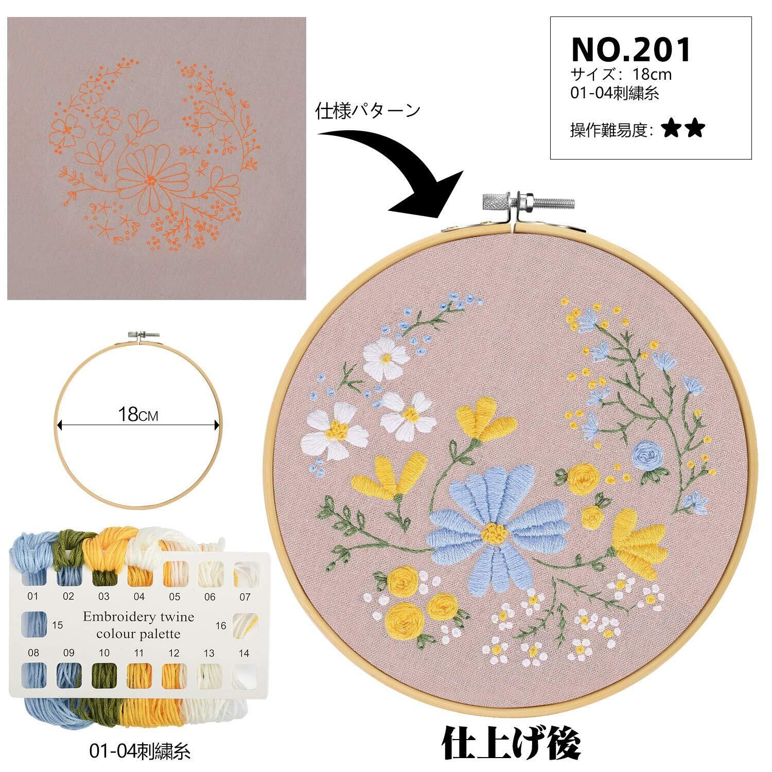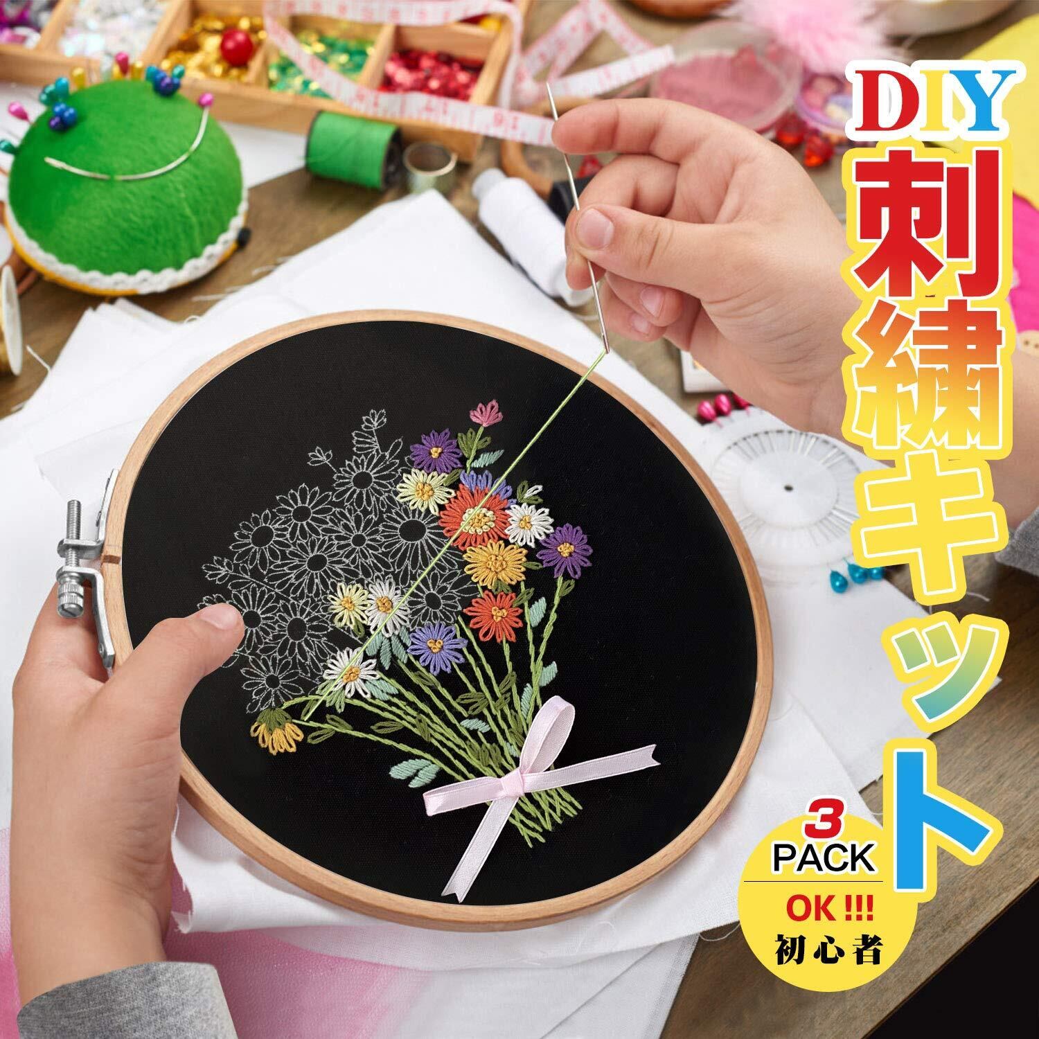 mefeny 刺繍キット 刺しゅう 初心者 パターンあり 英語と日本語ステッチ方説明書付き 3セット 竹製刺繍枠3本15CM/18CM/20CM 刺繍糸 刺繍針6本 刺繍布3枚 ハサミ1本 初心者学ぶ 花 | hananoki