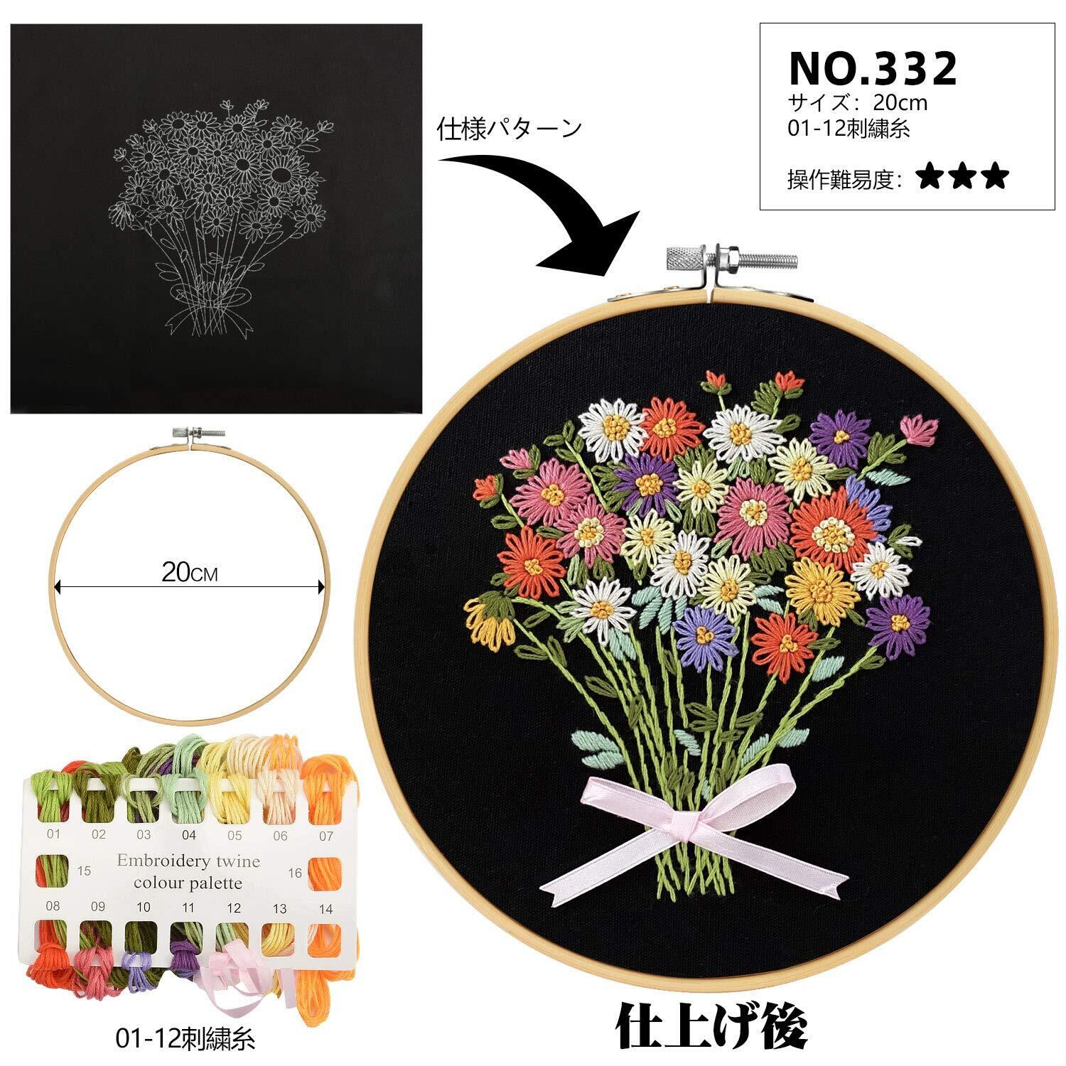 ❀[三つのサイズと図案]:三つのサイズがあり、枠が15CM/18CM/20CMのサイズです。図案もそれぞれ違います。手作りの面白さが楽しめます