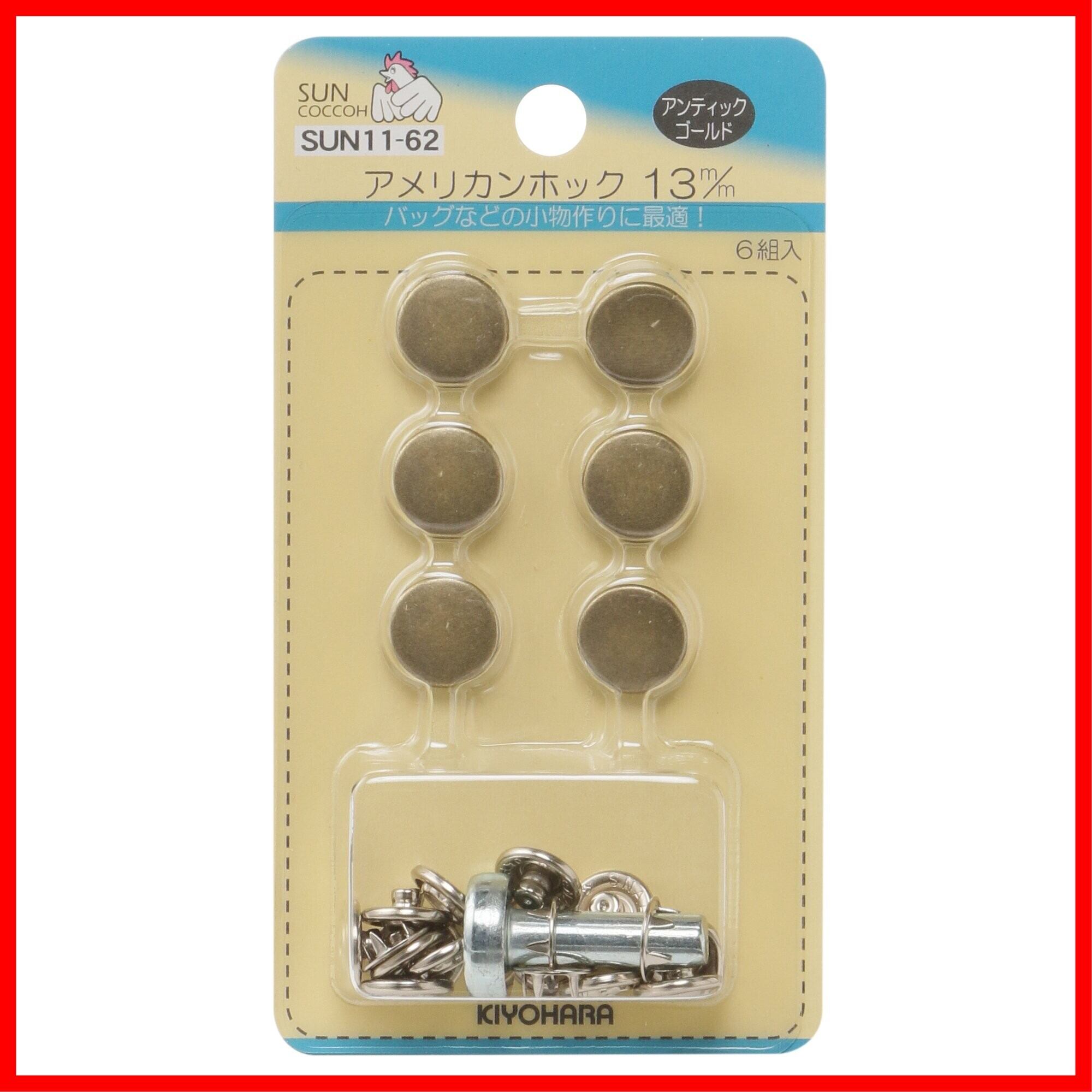 KIYOHARA サンコッコー アメリカンホック 6組入り 直径13mm アンティックゴールド 打ち具付き SUN11-62