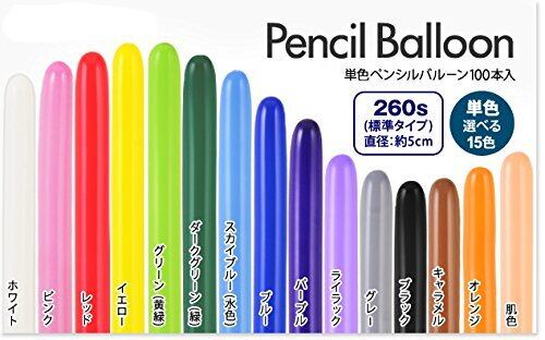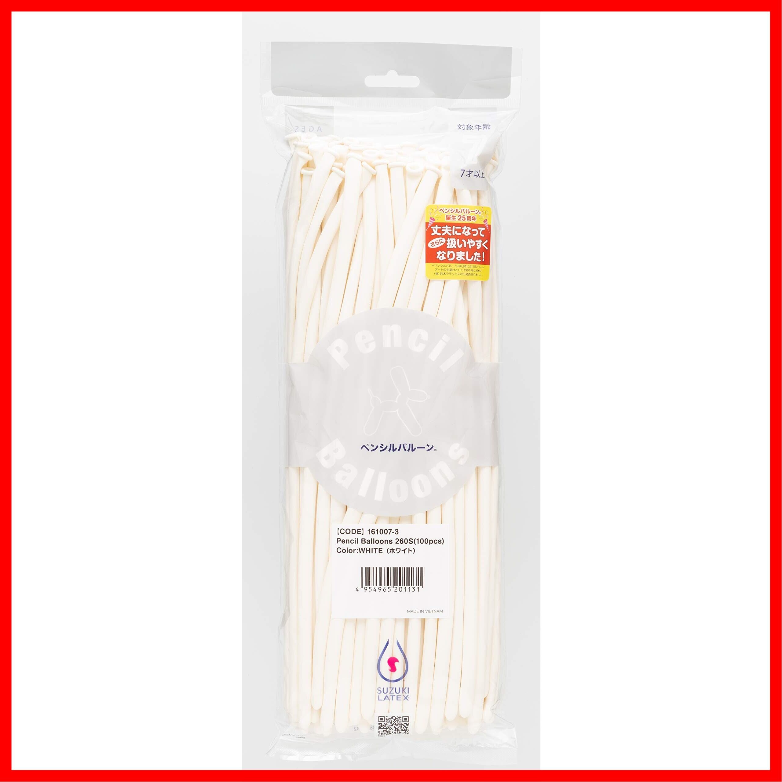 鈴木ラテックス ペンシルバルーン 単色100本 ホワイト