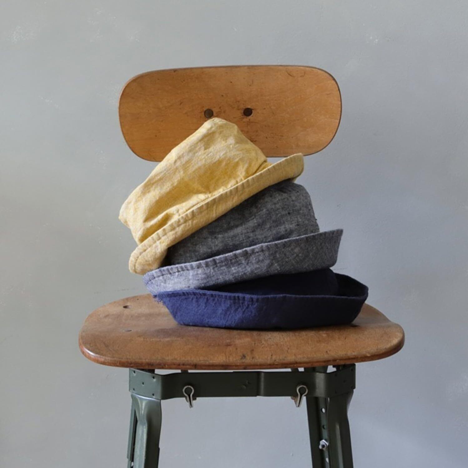 エルマは、ゆったりとした被り心地と、小さめのつばがポイント。どんなスタイルにもなじみやすいスタンダードさ。通気性の良さや、軽い被り心地は、リネン素材ならでは。内側についている紐で、サイズ調整も可能です。