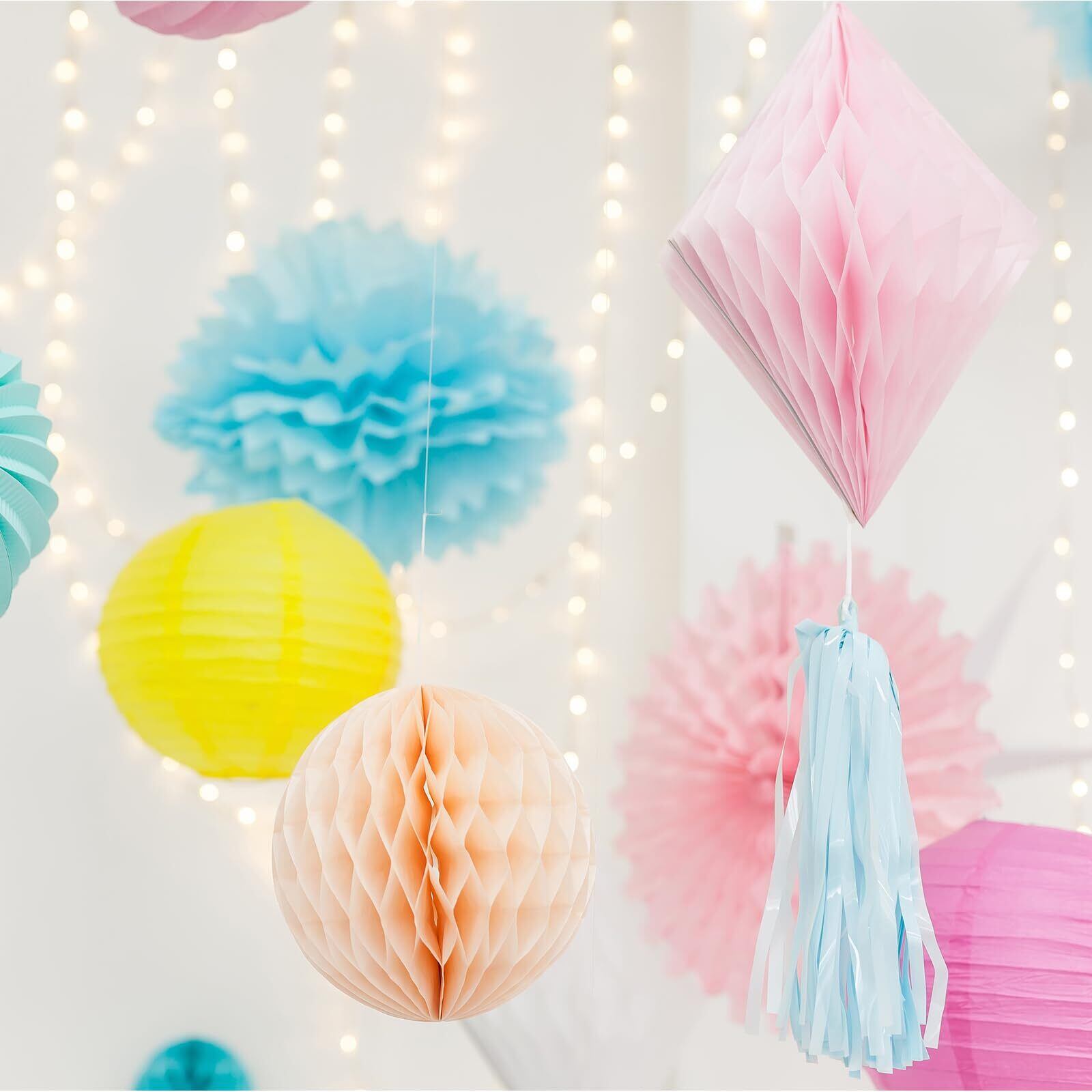 お使い方: ペーパーフラワーは全て折り畳まれた状態でのお届けになりますので、お子様と一緒に手作業を楽しむことができます。畳まれた棒状の紙は真ん中の部分が既に留めてあるので、扇を開くように両端をゆっくりと広げます。手を乾いた状態に保ち、破れないようにそっと広げてください。そして折り畳んだ部分を広げて、すべての紙片を引き離すと、紙の花はわずかに丸い形になります。紐に吊るして使用するか、ピンやテープを使ってペーパーフラワーの端を壁や飾りたい場所に取り付けます。使用後は折りたたんで保管でき、繰り返し使用できます。