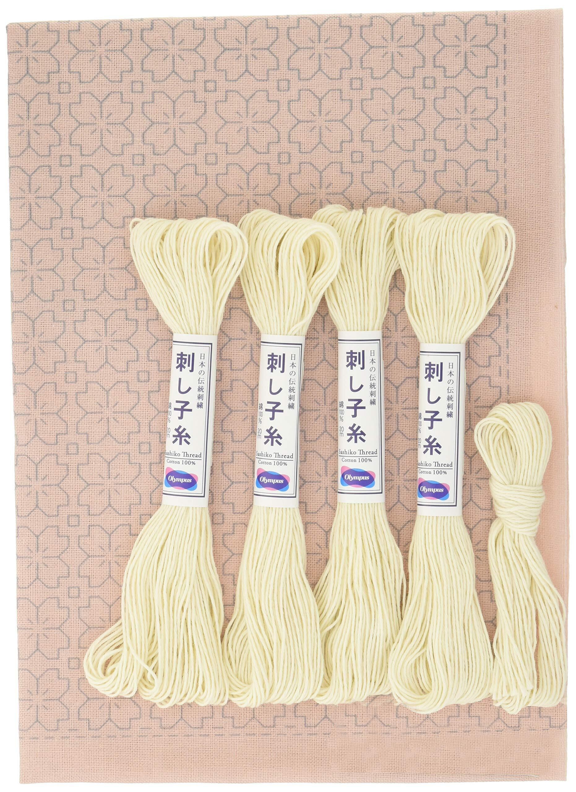 オリムパス製絲 刺し子キット 一目刺しの花ふきん 桜の花 約33cm×33cm SK-365