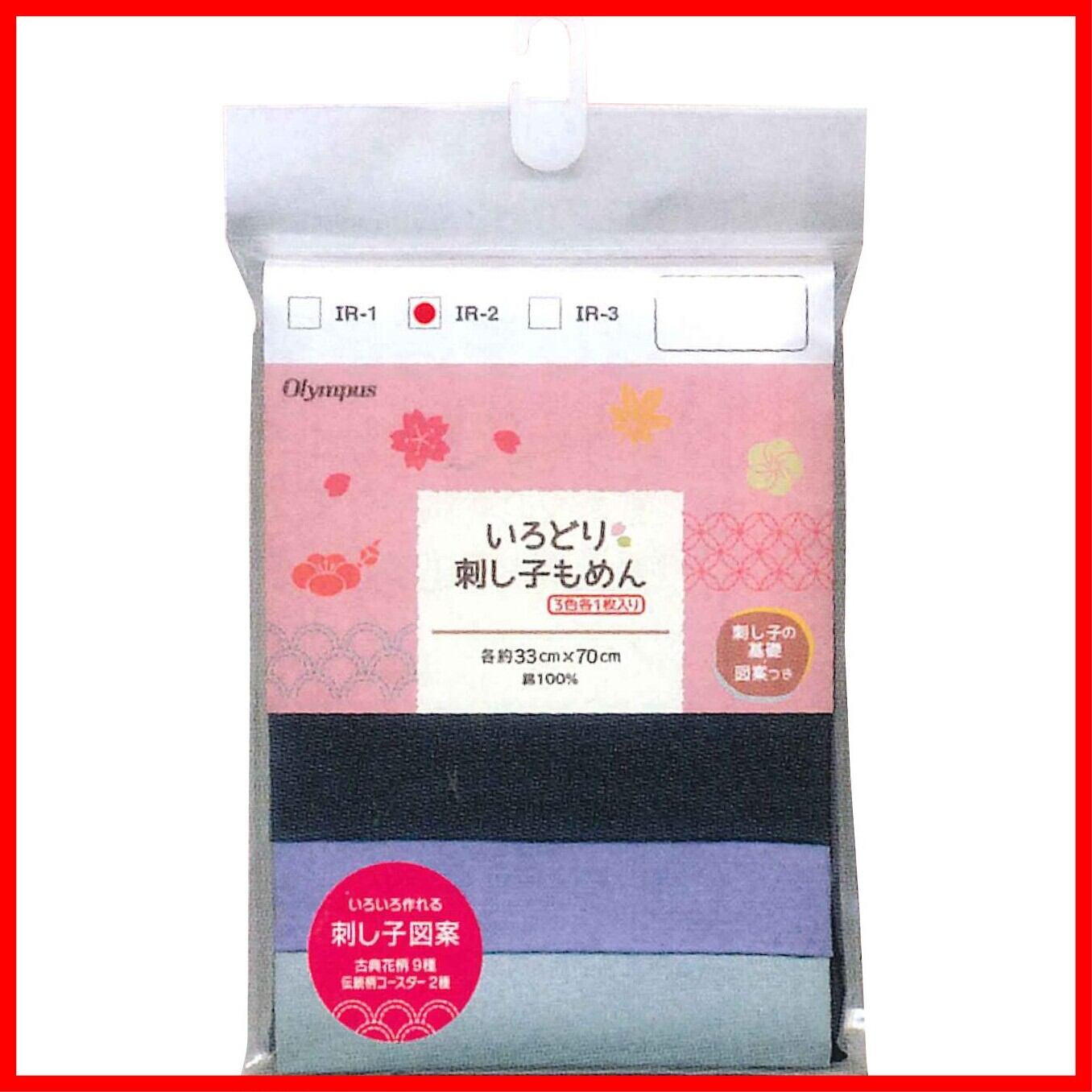 [セット内容]木綿布:3色各1枚 (刺し子の基礎・図案つき)