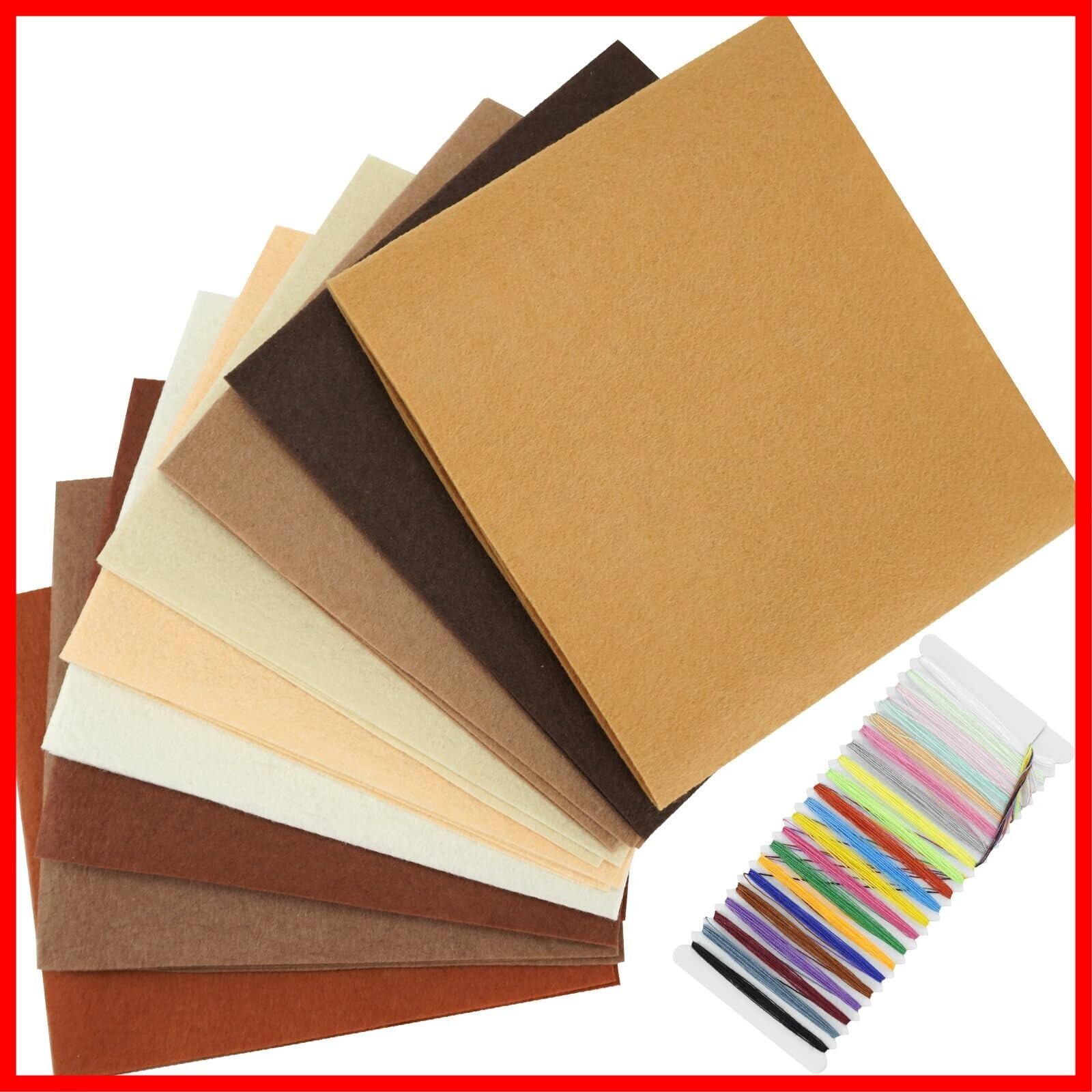 9枚 カラフル フェルト生地 柔らかい 不織布シート 厚さ約1mm DIY手芸用品 手作り材料 幅20cm×長さ91cm/枚 (ブラウン)