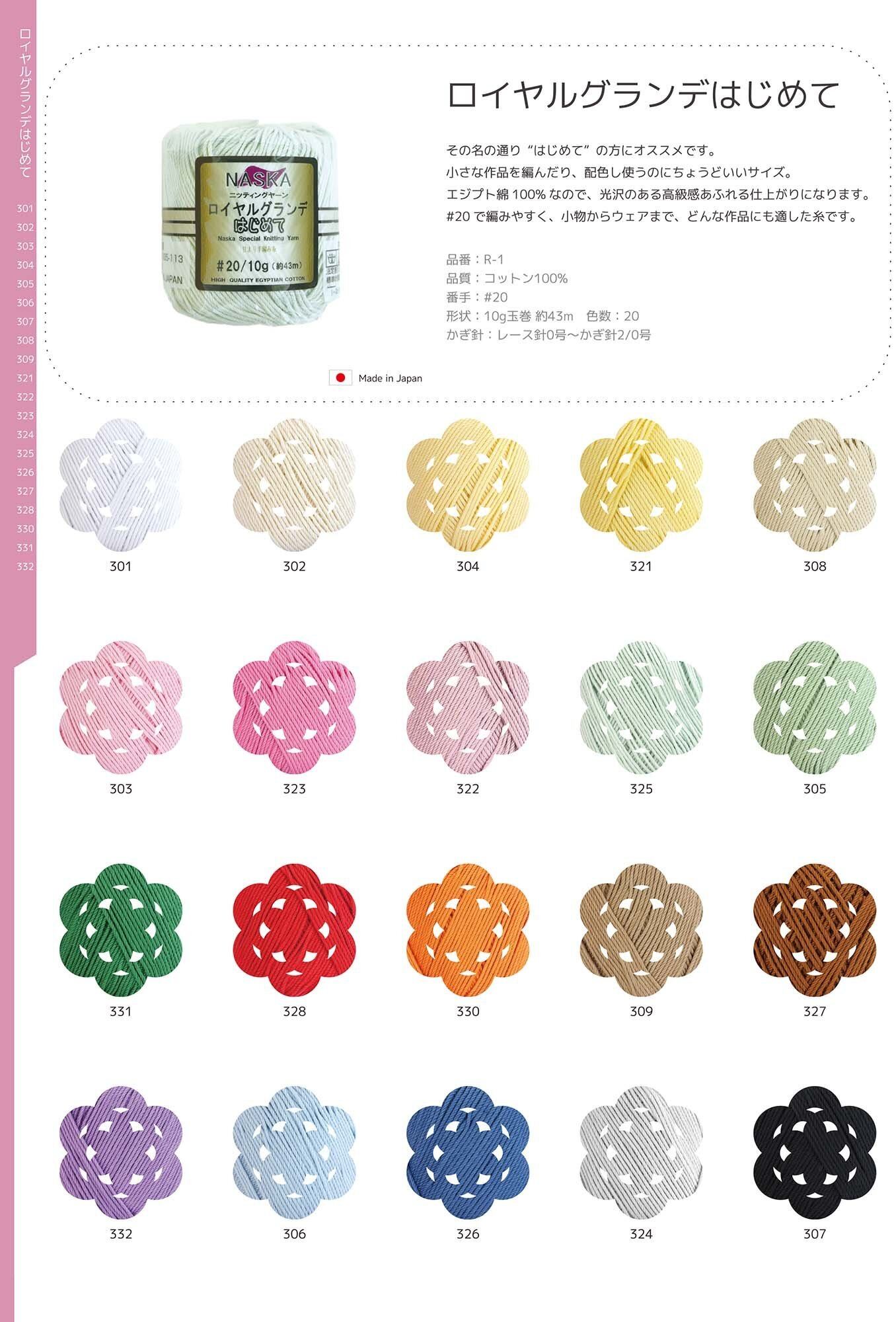太さは#20で編みやすく、小物からウエアまで、どんな作品にも適した糸です。