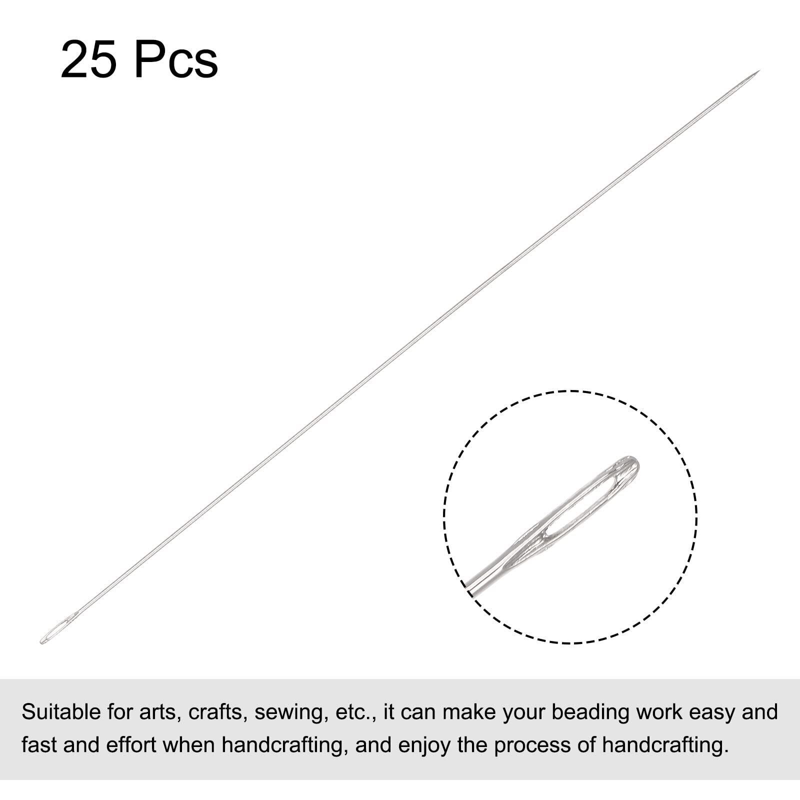uxcell ビーズ針 細かい 長い直線 縫い 刺繍糸 ステンレス鋼 120 mm 0.45 mm線径 25個