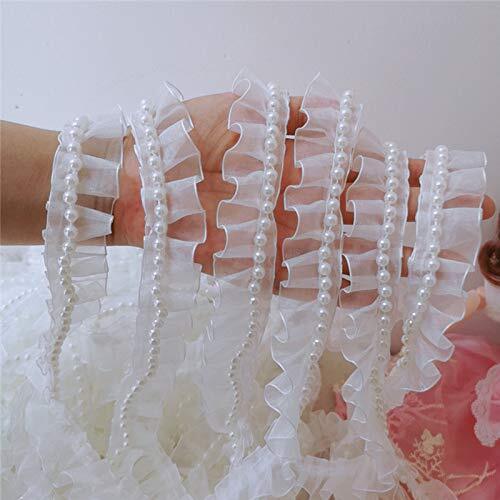 幅2.5cmプレミアムシフォンフリルレースフリルレースビーズ付き (3ヤード)