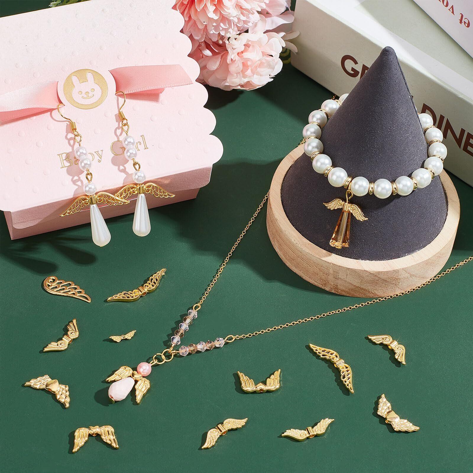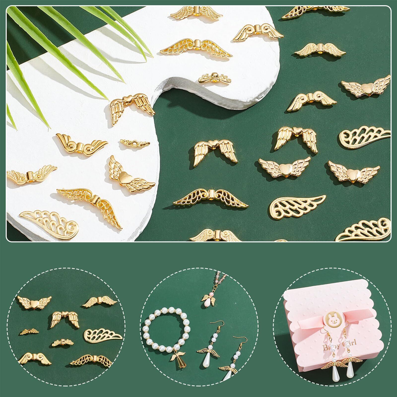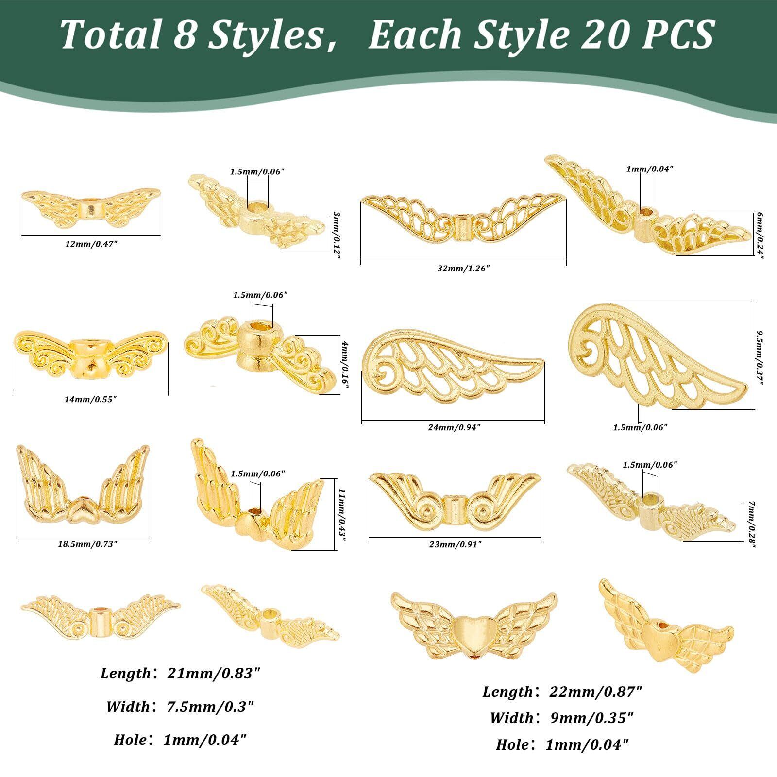 選べる8種のビーズ: パッケージには、8種類の160個の天使の羽の形の金属スペーサービーズが含まれています。各スタイルは20個で、DIYクラフトプロジェクトのさまざまなニーズを満たすことができます。