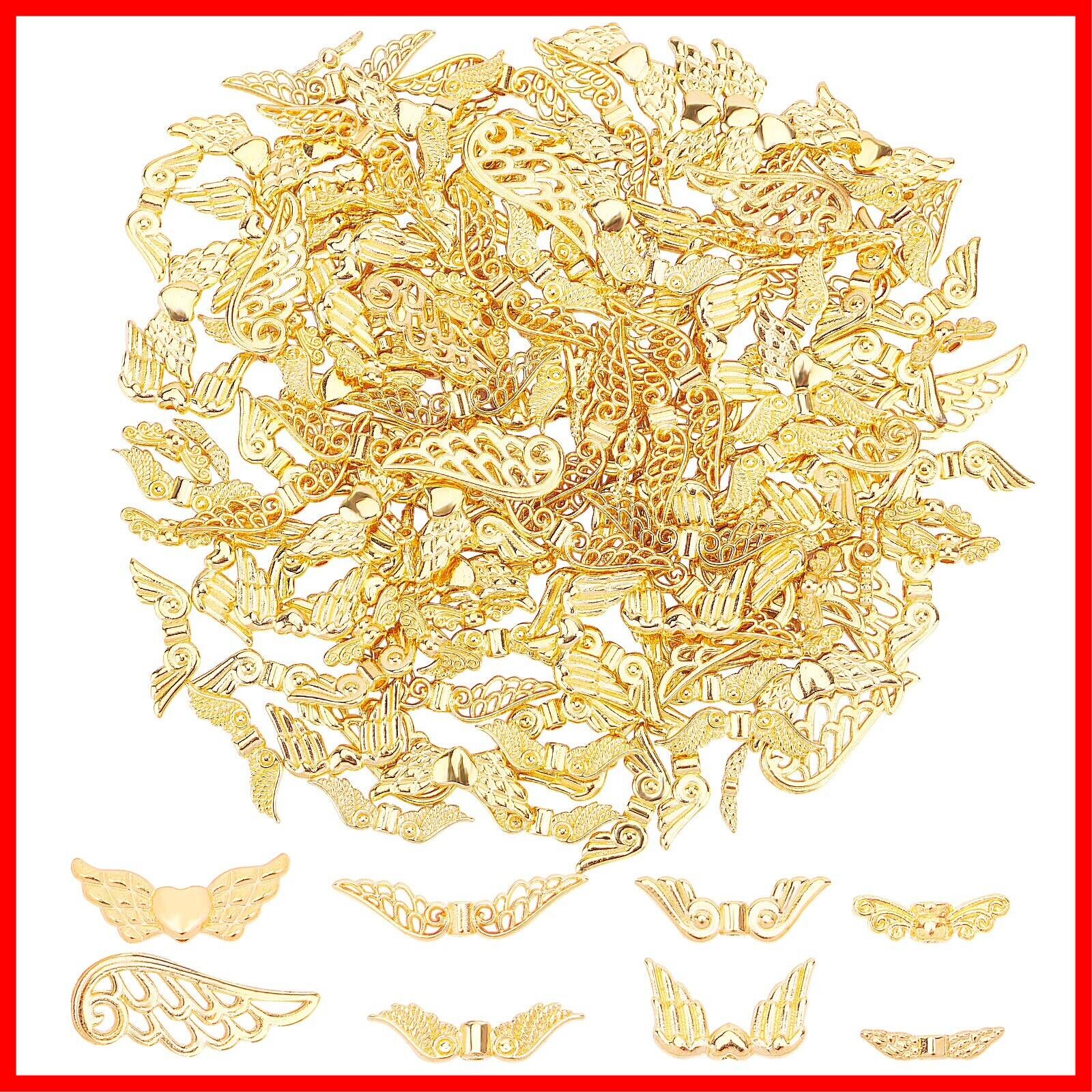 [PH PandaHall] 天使の羽 160個 8種 スペーサービーズ 翼柄 金古美 チャーム 金具 ジュエリー用 エンジェルウイング アクセサリーパーツ 手作り素材 材料 チベット風 合金 翼 イヤリングブレスレットペンダントネックレスジュエリーDIYクラフト作り ゴールド | hananoki