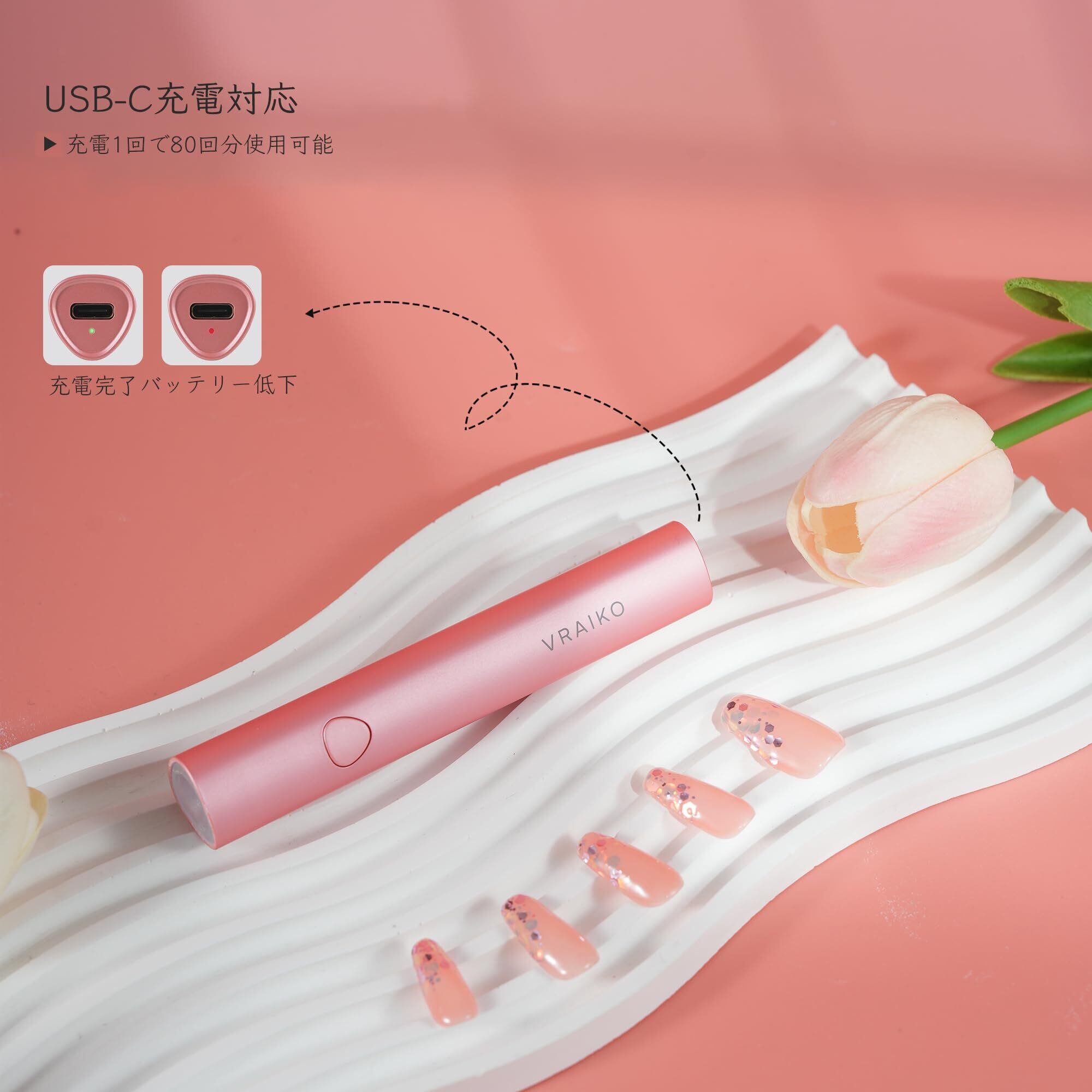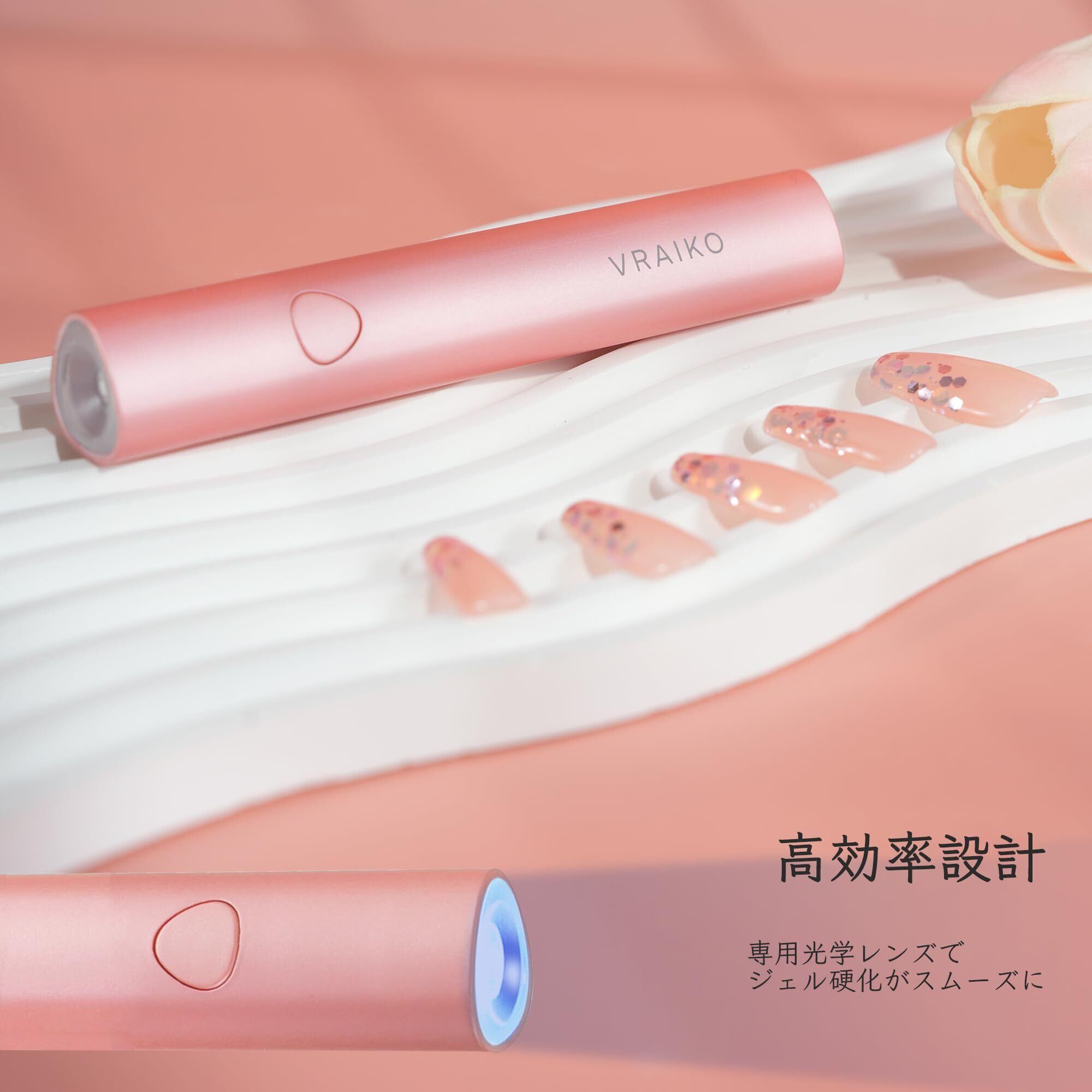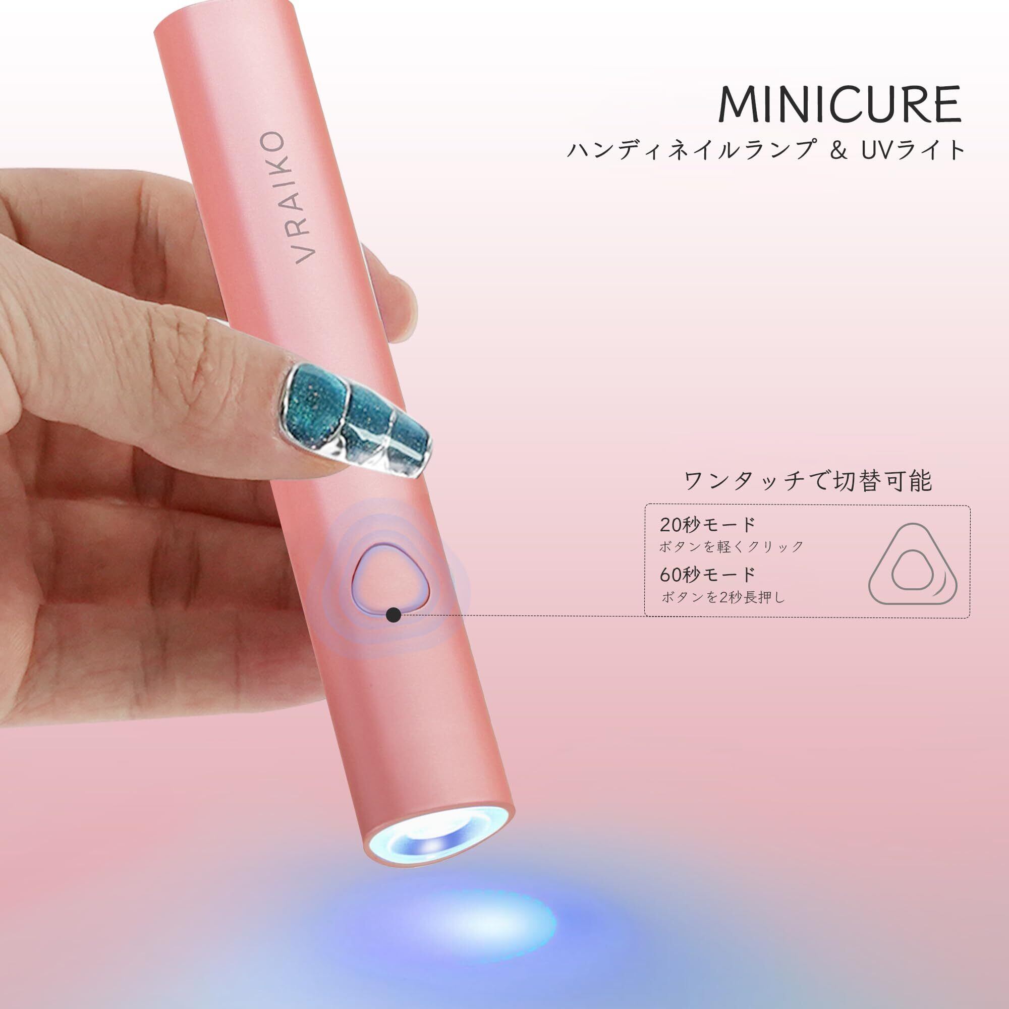 VRAIKO 携帯式UVネイルランプ【充電式/スタンド付き】Mincure ジェル速乾ライト 2段階タイマー(20s・60s) コンパクト設計 手足両用 (ピンク)