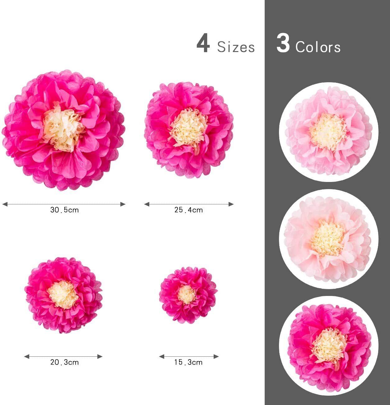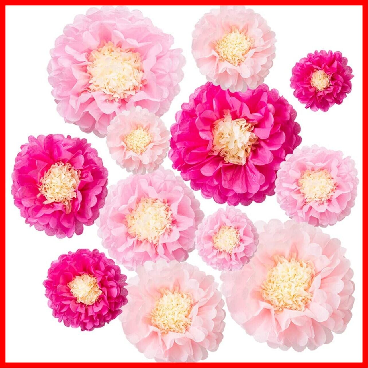 LIHAO 飾り付け 桜 卒業 春 飾り 装飾 花紙 お花紙 ペーパーフラワー 12枚セット 誕生日 女の子 100日祝い バースデー 飾りつけ ペーパーポンポン 風船 バルーン 結婚式 記念日 お祭り パーティー 飾り パーティーグッズ イベント デコレーション インテリア