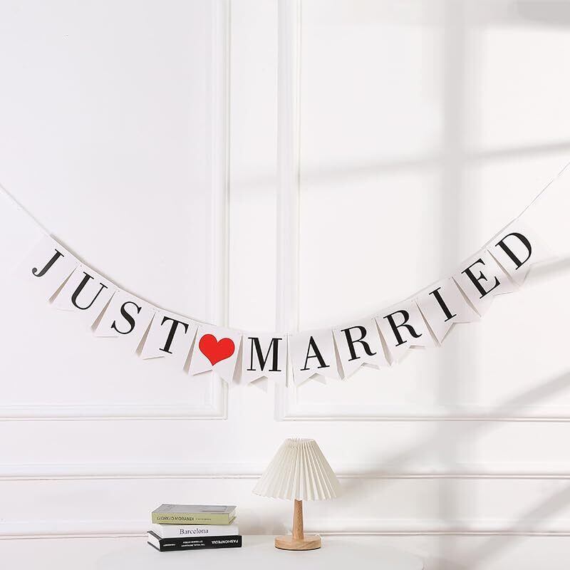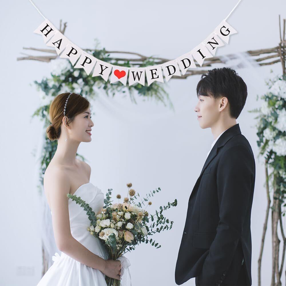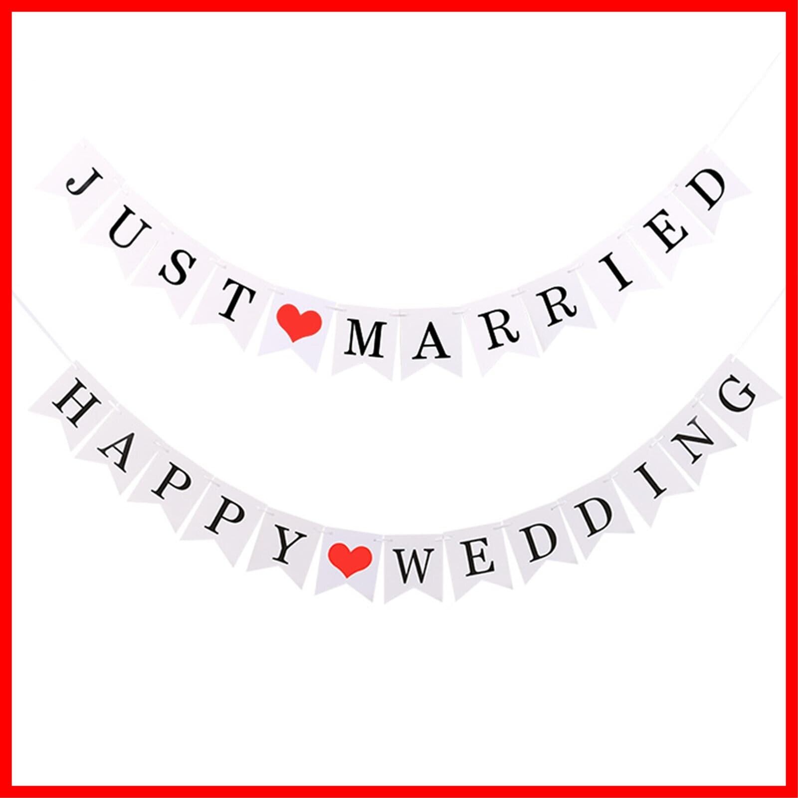 LKCCTK 結婚式用ガーランド 2種セット Happy Wedding/Just Married 前撮りや会場飾りに最適な結婚式小物
