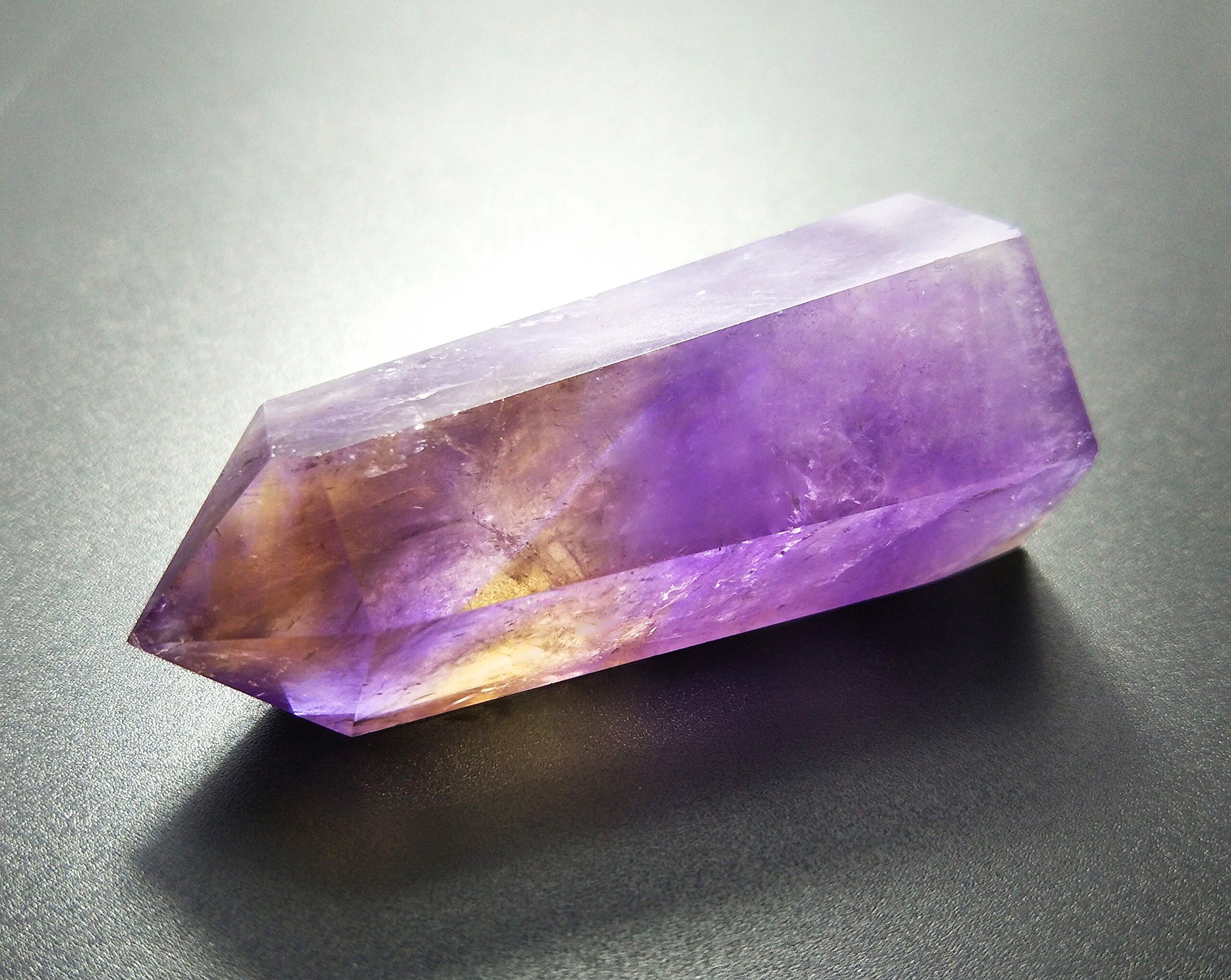 ヒーラーの天然石パワーストーンアメシストヒーリングワンド 先のとがった多面体仕上げ仕様のクリスタル棒で 癒し瞑想とチャクラ強化 エネルギーヒーリングなどに最適