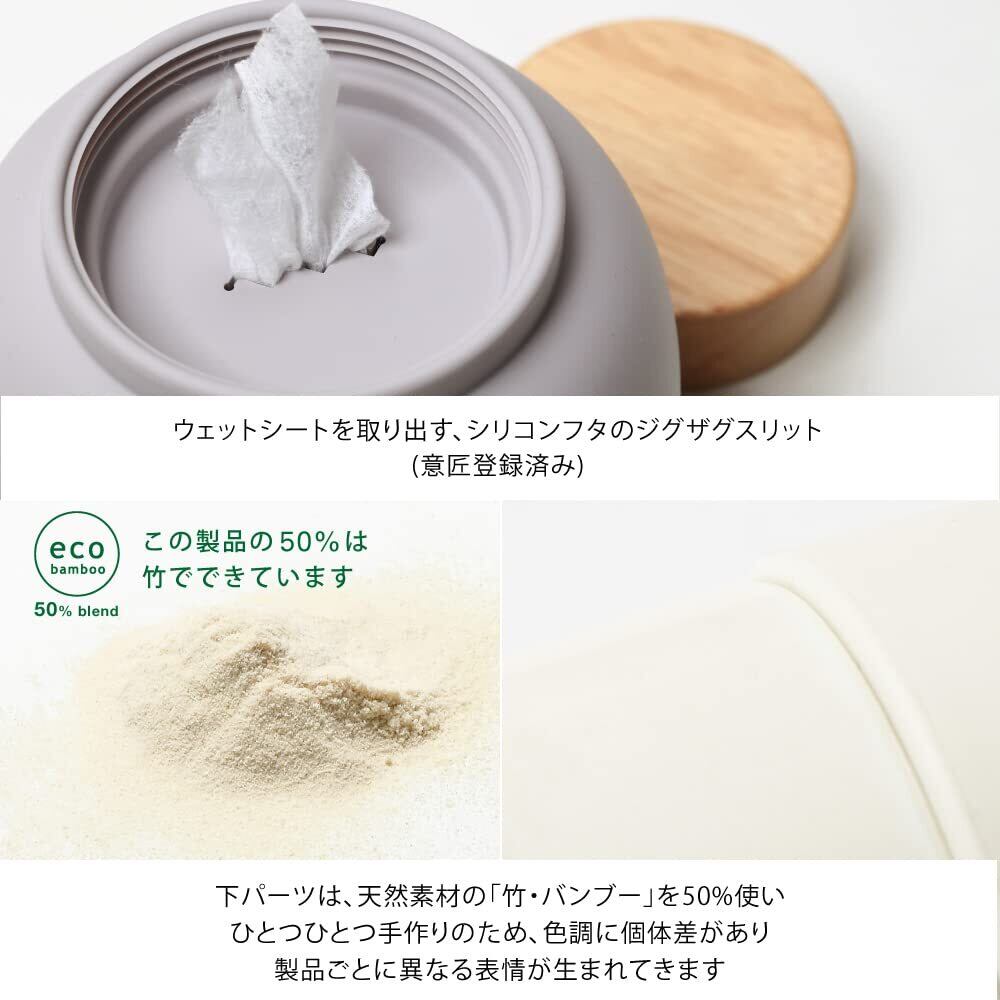 大判ウェットシート収納の新発想。 インテリアに馴染み、そこにあるだけで穏やかなやさしい空気感が生まれます。 赤ちゃんのおしりふきもコンパクトに収納できます。 ジグザグスリットは、シートの取り出しを容易にします。