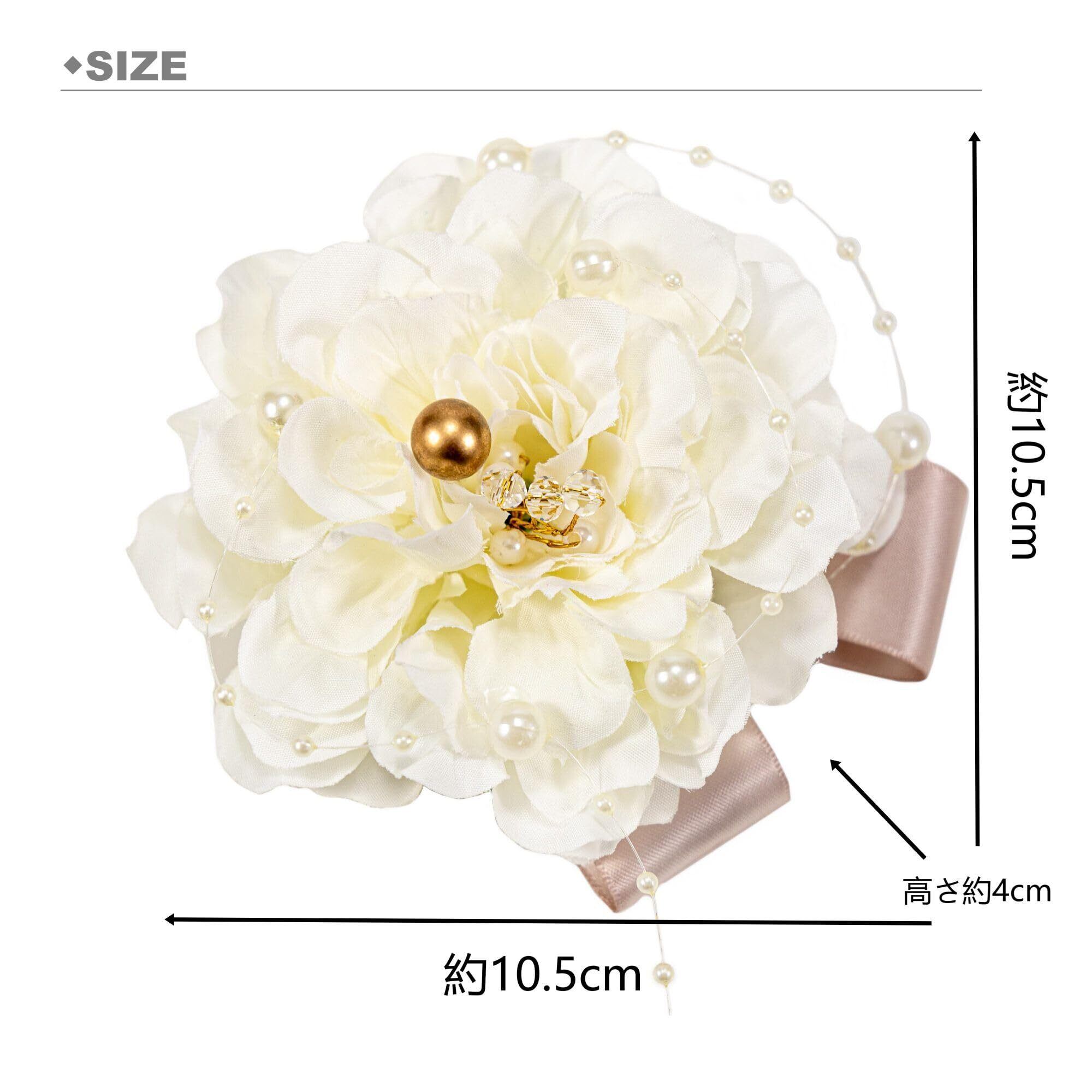 パール リボン付きフラワーコサージュ, 10.5cm×10.5cm, ホワイト, beigeベージュ,フォーマル用ブローチ, 入学式・卒業式・結婚式 ブローチ 大きめ華やか フォーマル ブローチ 卒業 式 母親 服装 洋服胸花 安い | hananoki