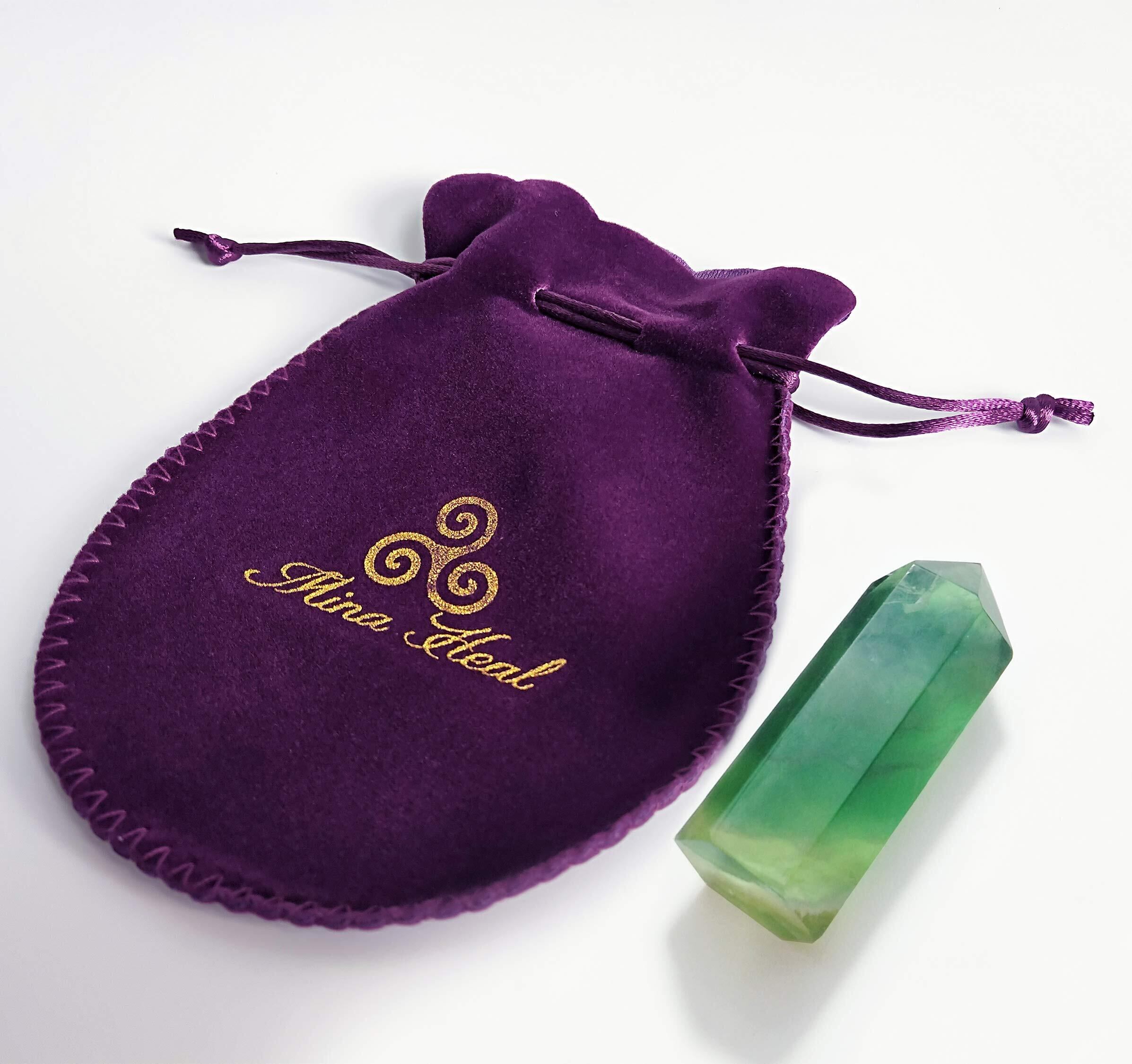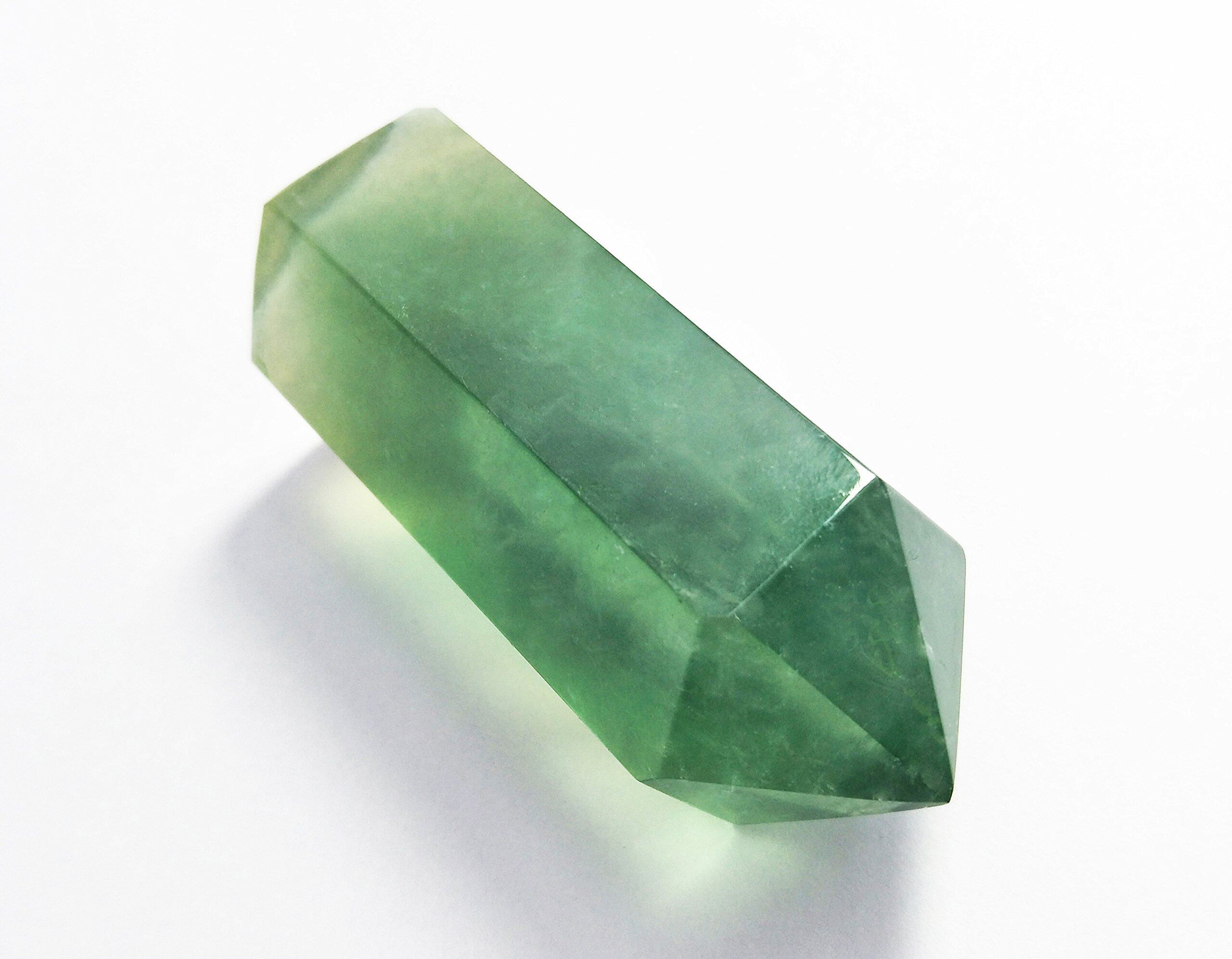ヒーラーの天然石パワーストーンフローライト(蛍石)ヒーリングワンド 先のとがった多面体仕上げ仕様のクリスタル棒で 癒し瞑想とチャクラ強化エネルギーヒーリングなどに最適 Green Fluorite Healing Stone Wand Pointed & Faceted | hananoki