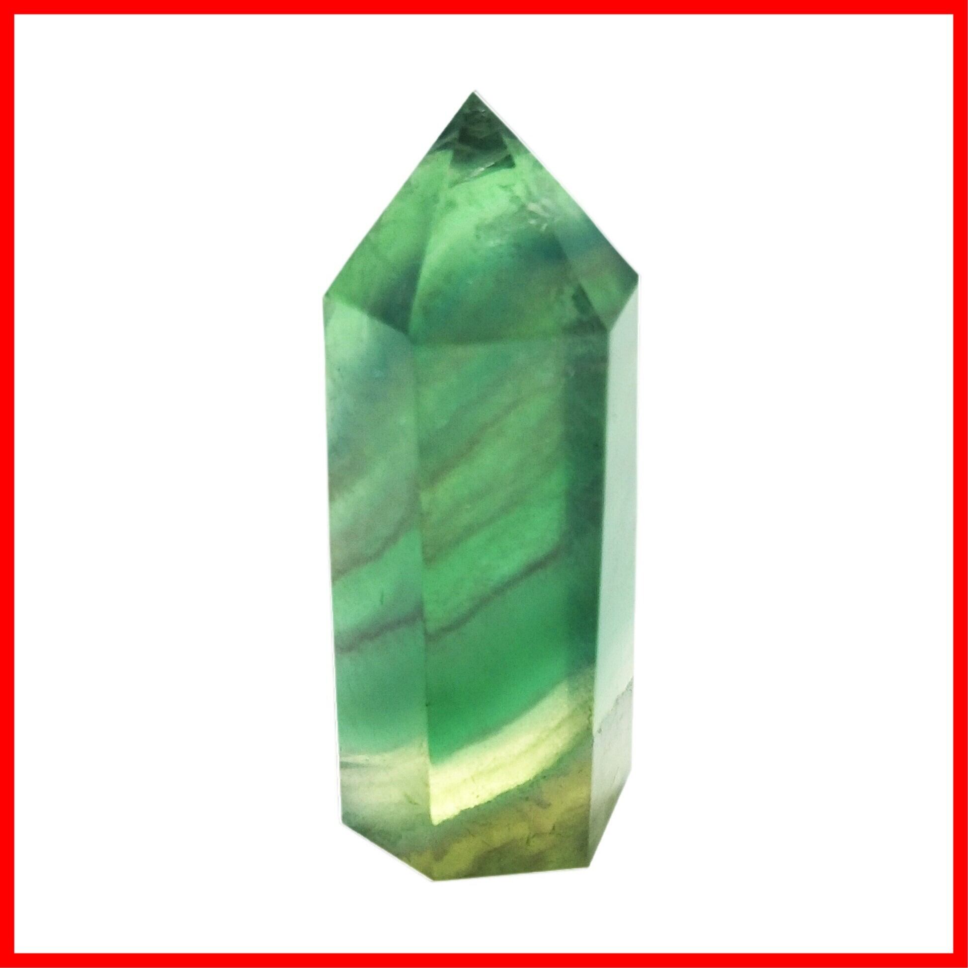 ヒーラーの天然石パワーストーンフローライト(蛍石)ヒーリングワンド 先のとがった多面体仕上げ仕様のクリスタル棒で 癒し瞑想とチャクラ強化エネルギーヒーリングなどに最適 Green Fluorite Healing Stone Wand Pointed & Faceted