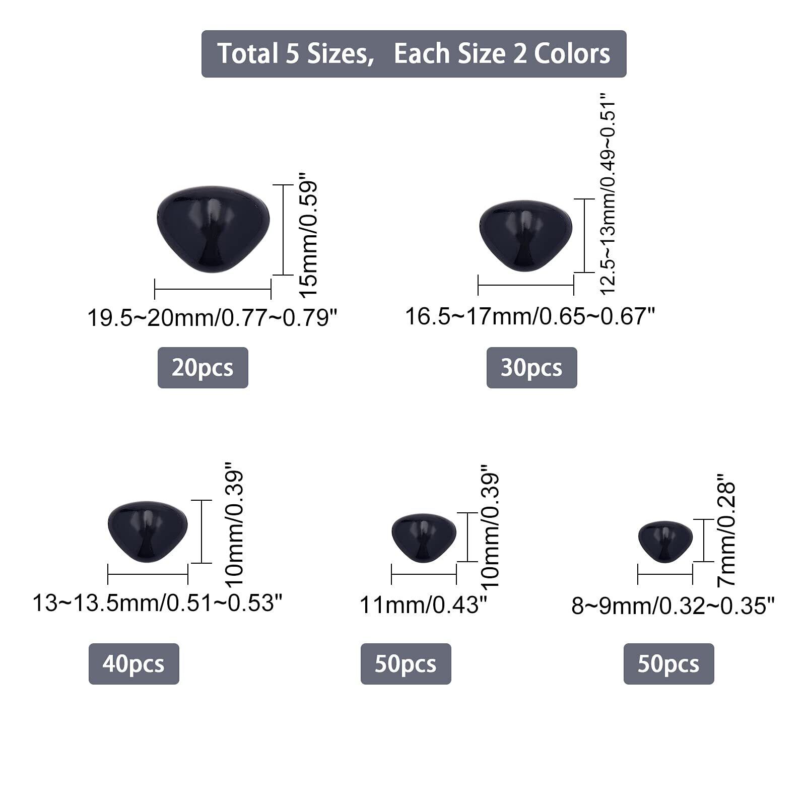 PH PandaHall ぬいぐるみ鼻 動物 人形鼻 380個入り 5サイズ おもちゃ 鼻パーツ 貼り付けタイプ DIY縫製 クラフト 手作 ブラック 7mm/10mm/12mm/13mm/15mm