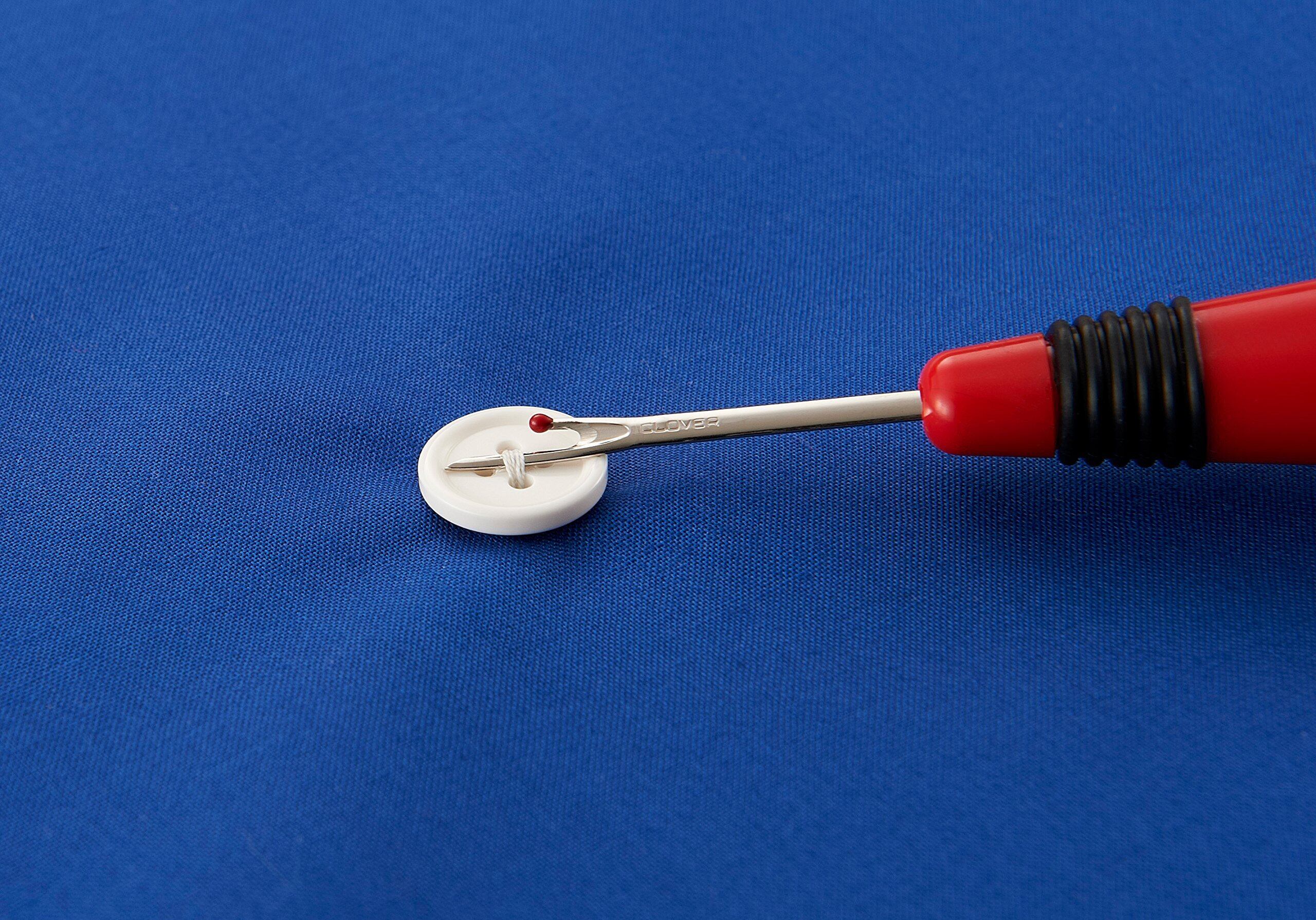はさみでは切りにくいボタンの糸切り、縫い目、しつけ糸の糸切りに適しています。