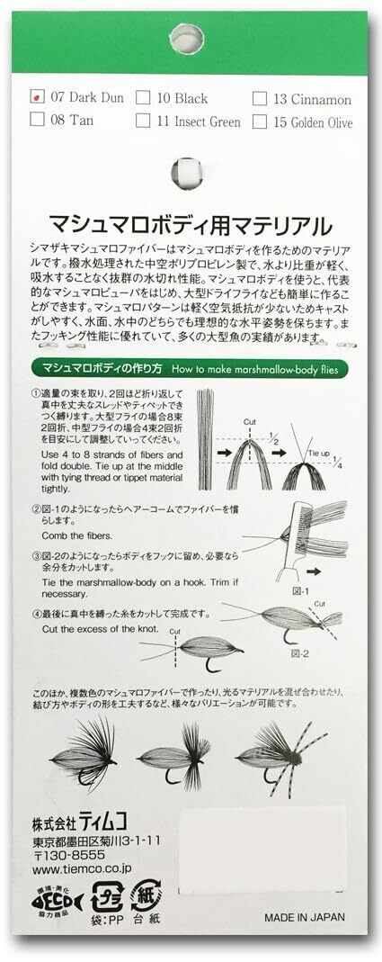 ティムコ(TIEMCO) フライタイイングマテリアル マシュマロボディ用 中空構造 撥水加工 シマザキ マシュマロファイバー シリーズ