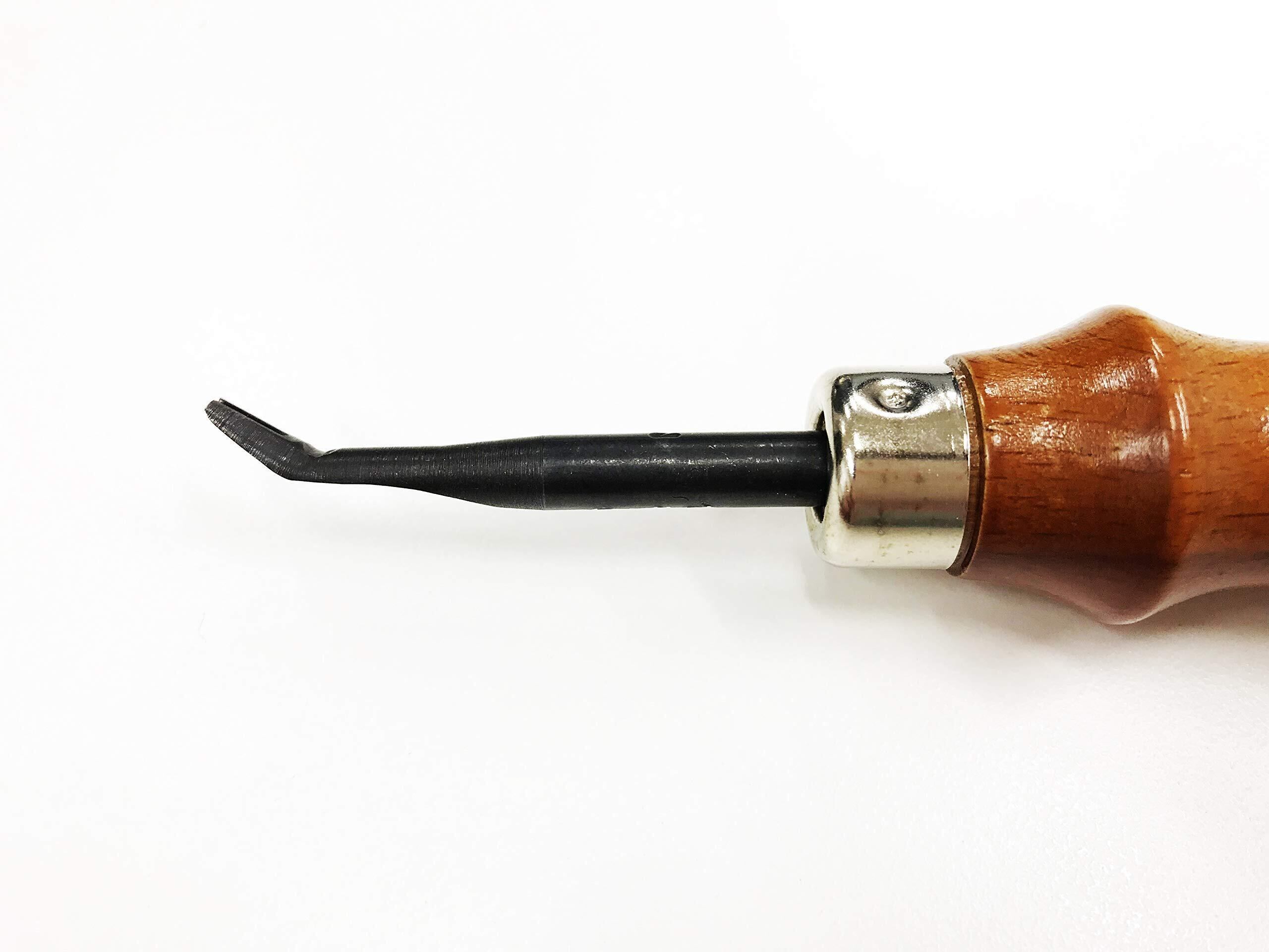 焼き入れと研磨を施した刃先は、一定の巾で素早く革のヘリを削ってコバに丸みをつけ、後のコバ磨きを美しく仕上げることができます。
