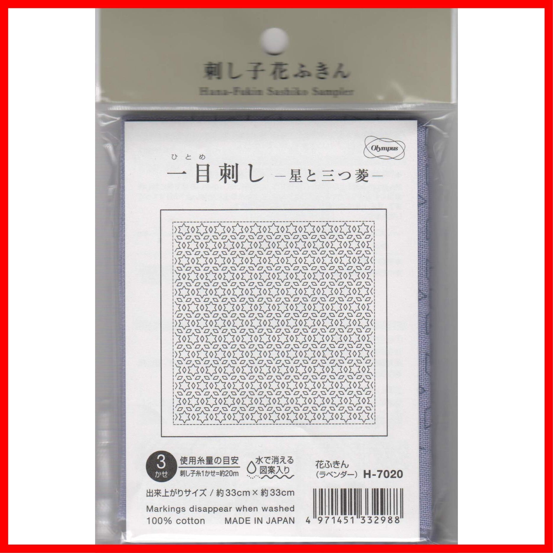 オリムパス製絲 刺し子布パック 刺し子花ふきん 一目刺し -星と三つ菱- (ラベンダー) H-7020