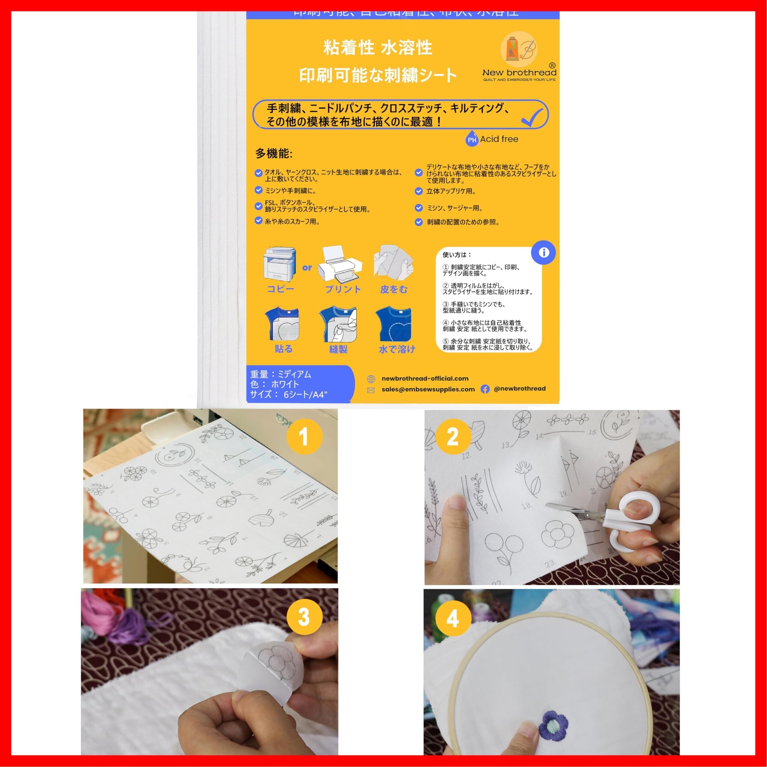 New brothread 6枚 A4 (29.7x21cm)粘着刺しゅう用水溶性シート 刺繍に 水でとける 下絵シート 印刷可能な刺繍紙 刺しゅう安定紙 手刺繍とミシン刺繍に適したパターンを印刷し、描くことができます