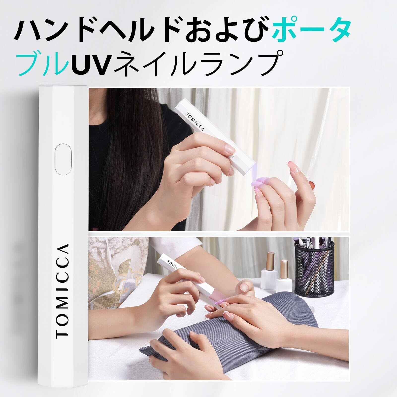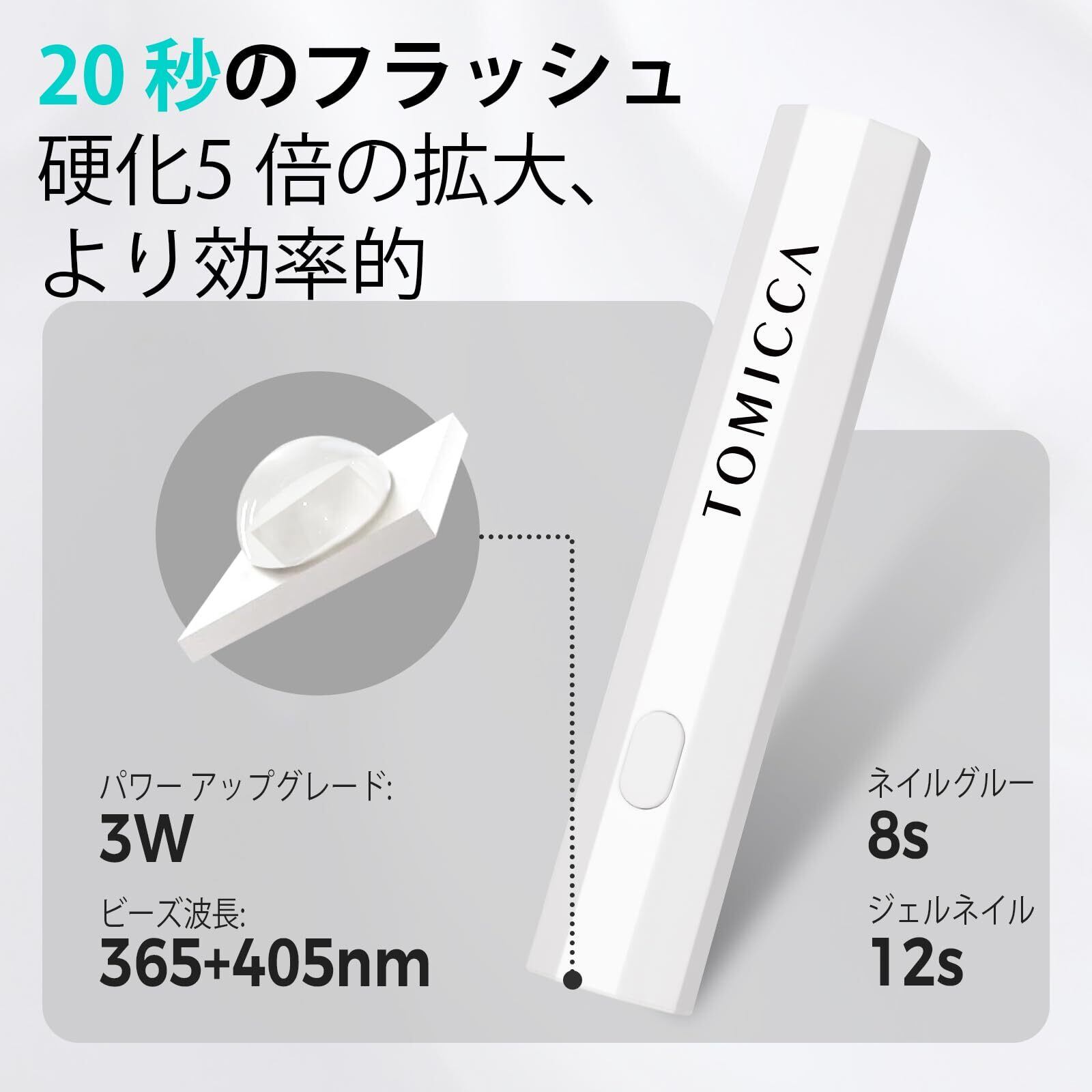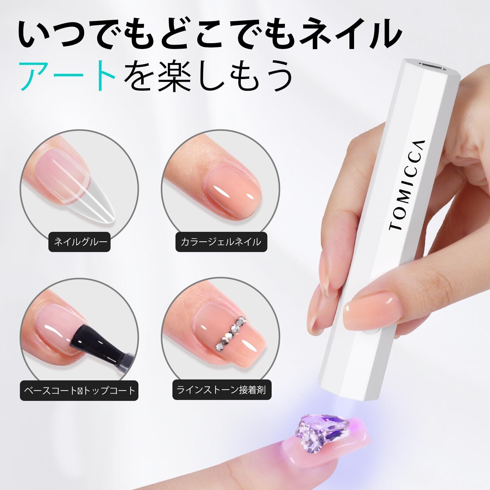 TOMICCA ネイルライトペン型 ミニネイルライト全てのジェルネイルアート対応 LED & UV 仮硬化 USB充電 手足両用 LEDライト 携帯用充電式 UVネイルライト