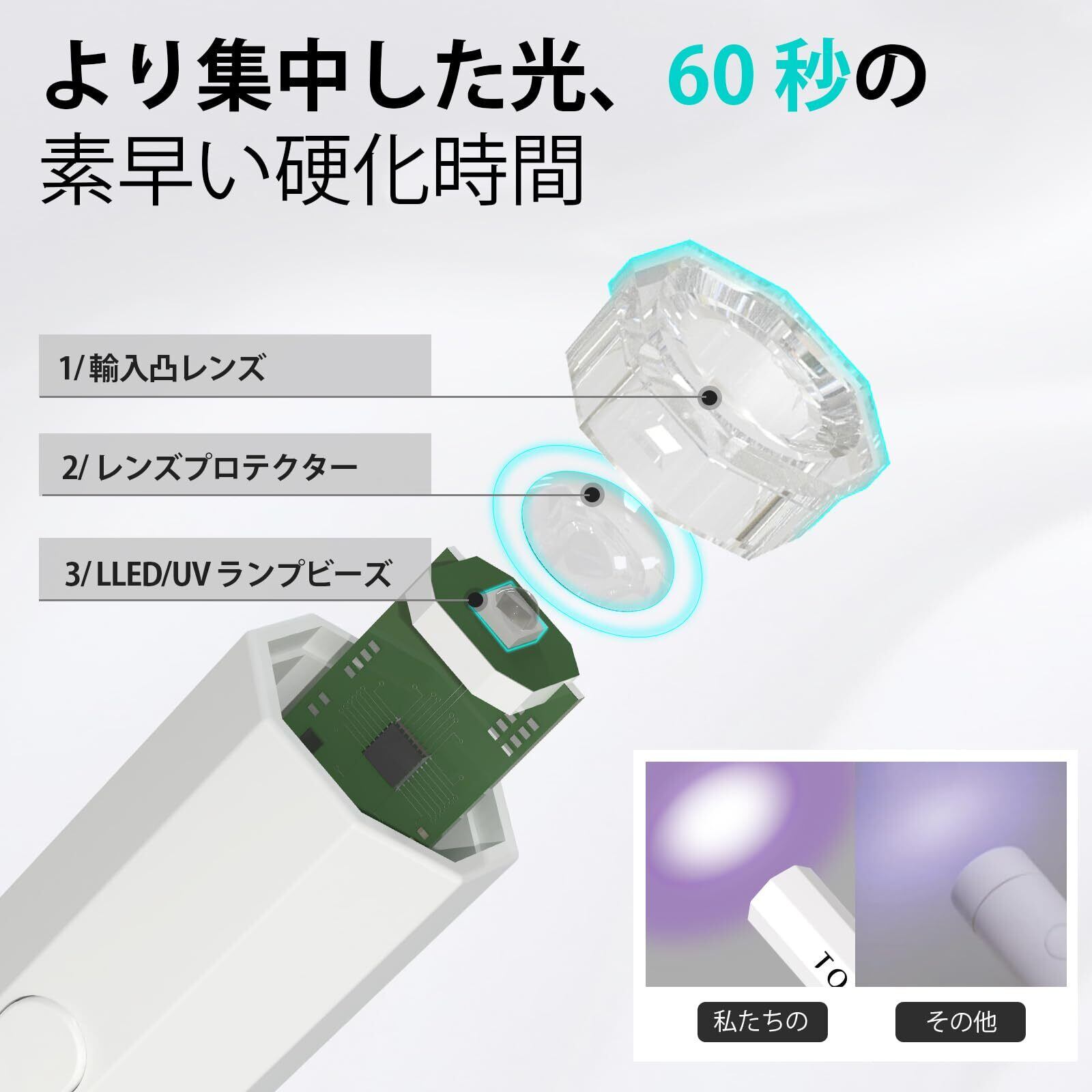 使いやすいネイルランプ:ミニネイルライトは、レンズを保護するための高硬度透明保護カバーを使用しており、パワーは3ワット超簡単に使えます。USBポートから充電するだけで、最大40分のバッテリー駆動時間を楽しむことができる。初回使用する前に、必ず一度2時間の充電を行ってください。 ※現表示の電池残量は工場出荷時のテスト残量となります為、 継ぎ足し充電が必要です。