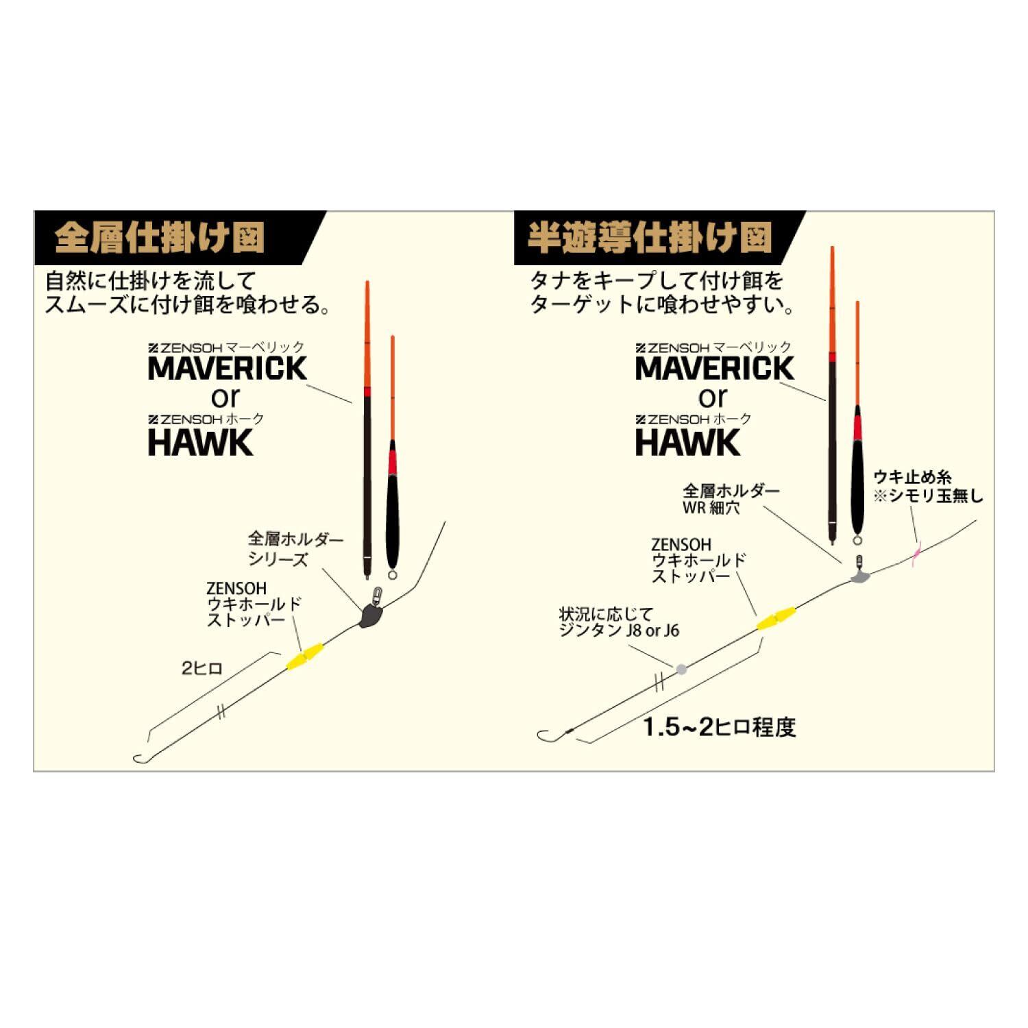 キザクラ(kizakura)ZENSOH マーベリック!!グレ・メジナを棒ウキで狙う!棒ウキの「仕掛けの安定性」・「視認性」・「感度」のメリットに加えて取り回しの良いサイズを追求したグレ・メジナ専用モデル。狙ったポイントへまっすぐ飛び、潮筋から外れにくい安定した低重心ボディ。超遠投エリアの攻略に最適。