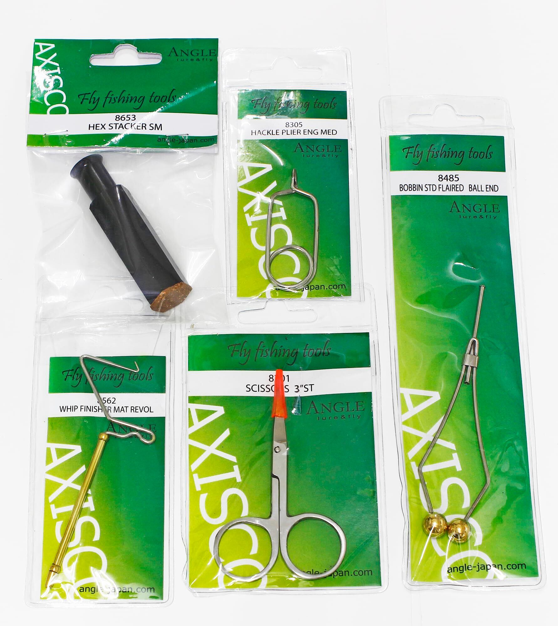 タイイングに欠かせない5種類のツールとバイスをセットにしました。