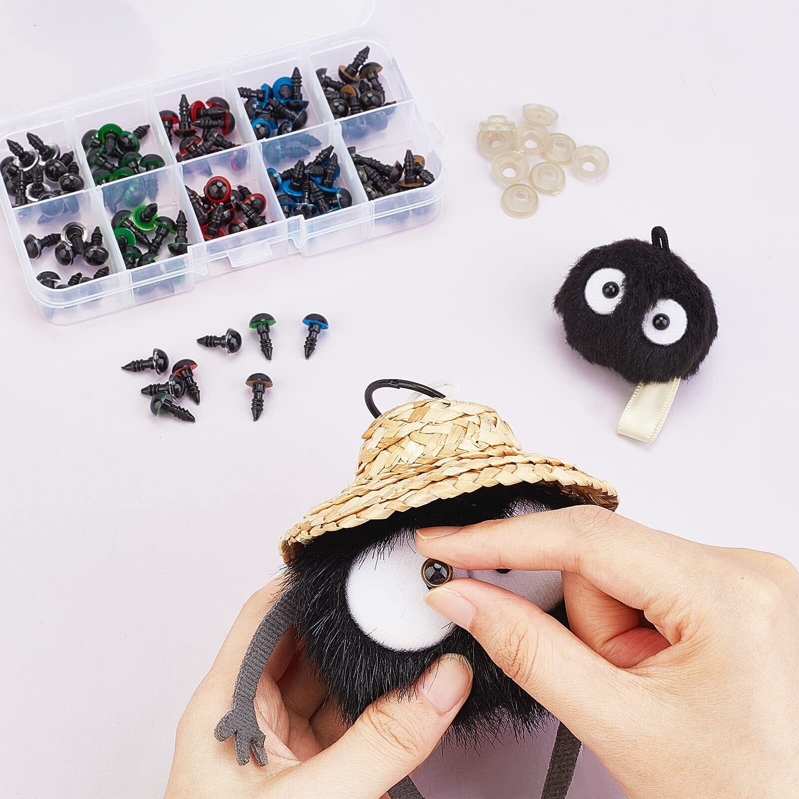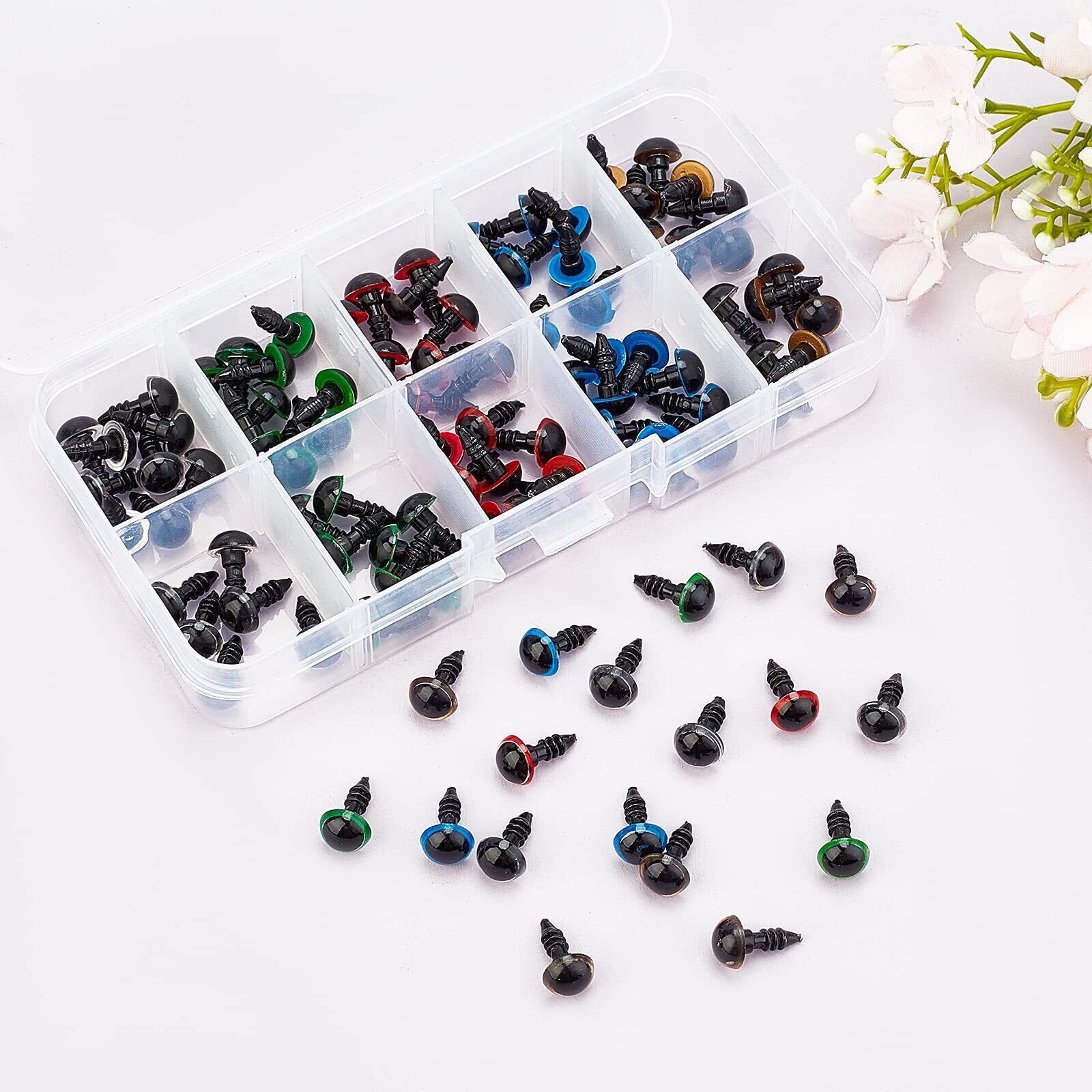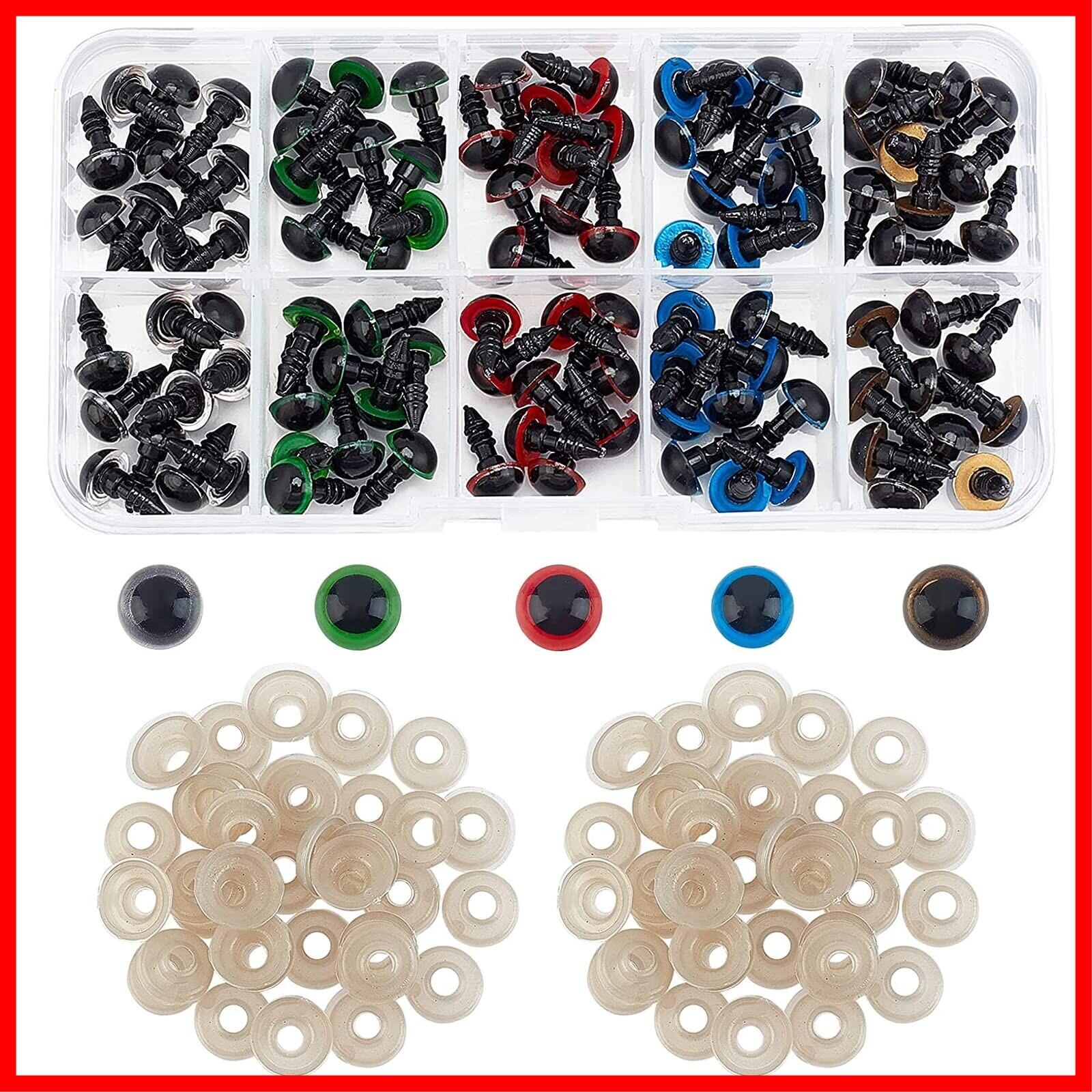 SUPERFINDINGS 5色 差し目 100個入り さし目 ぬいぐるみ目 8mm 動物 カラフルなプラスチック製 安全目 テディベア目 クマのため カラフル 丸いクラフト 人形の目 ワッシャー付き 犬 人形制作キット | hananoki