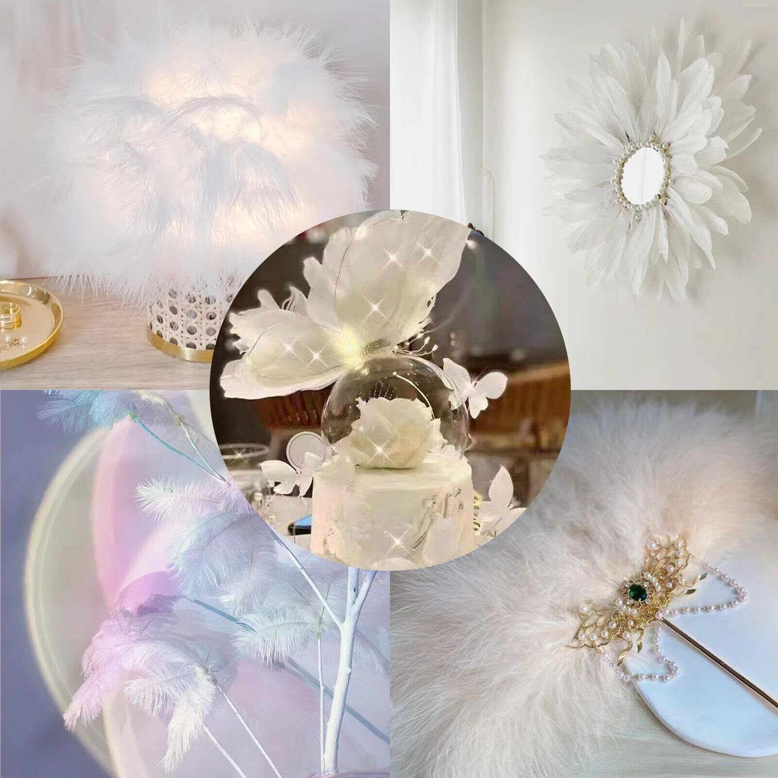 ふわふわの羽根が演出する幻想的な空間!結婚式やパーティー、DIYに最適な装飾フェザー!