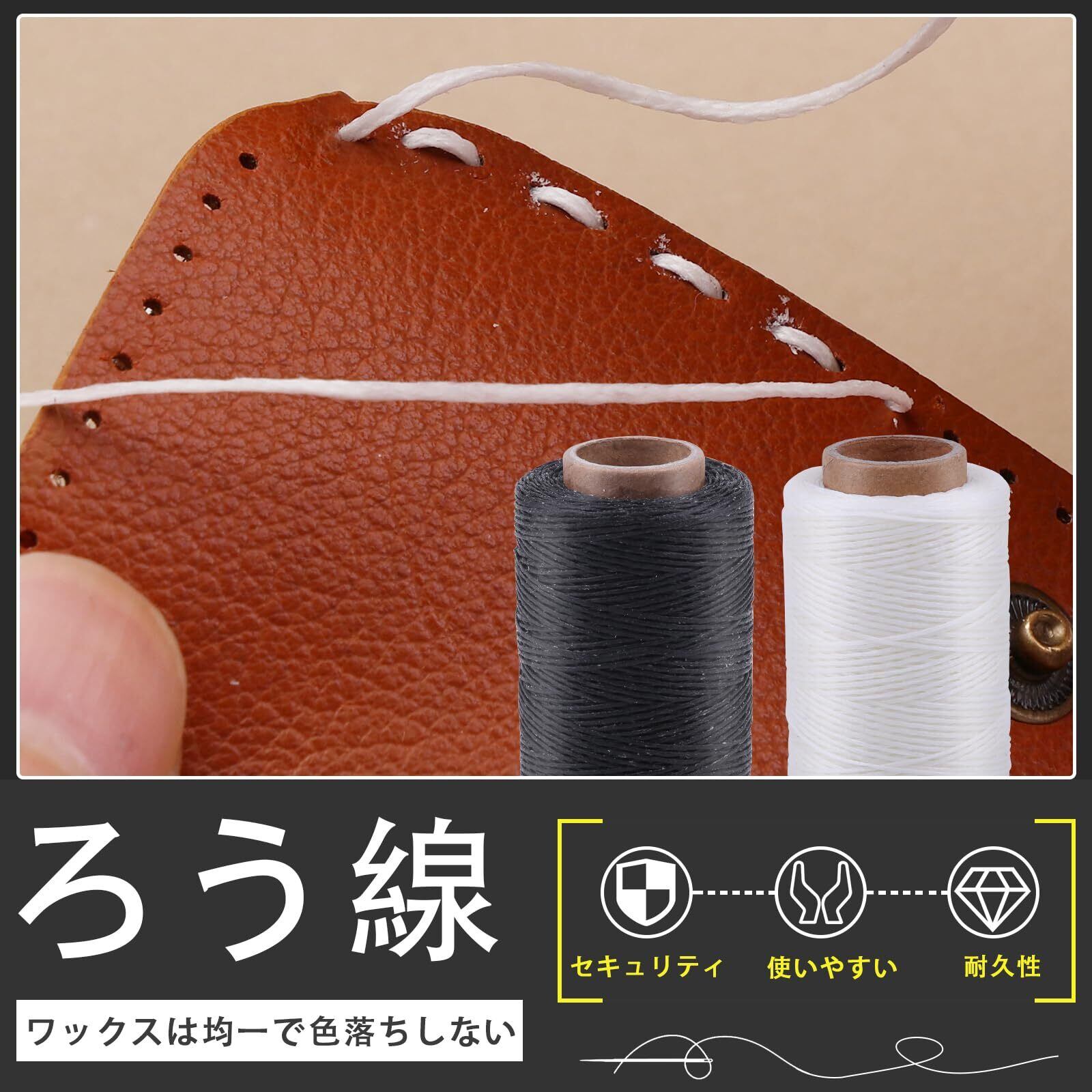 実用的で高品質:ロウで加工された紐なのでとても丈夫で水にも強く、加熱して蝋が固まります。丈夫で耐久性があり、壊れにくいため、デリケートなバッグ、財布、革製品の製造に幅広く使用できます
