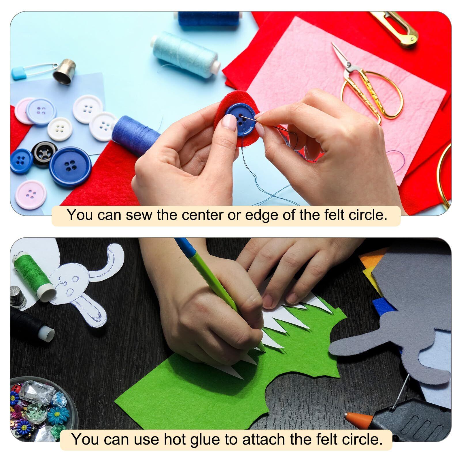 特徴 - 丸いフェルトサークルは均等に円形にカットされており、手芸での時間と労力を節約し、望むパターンを切り出すのに多くの時間を費やすことを避けます。円形のデザインは製品にあまり目立ちません。